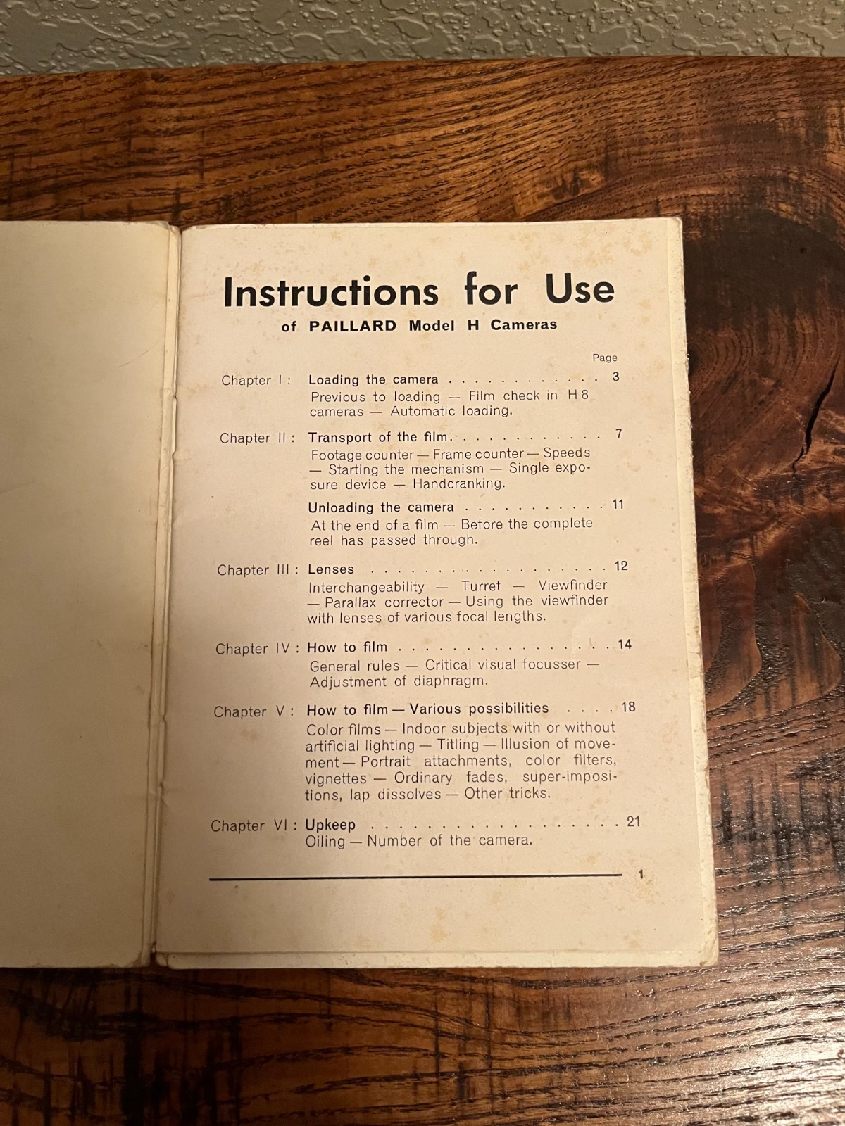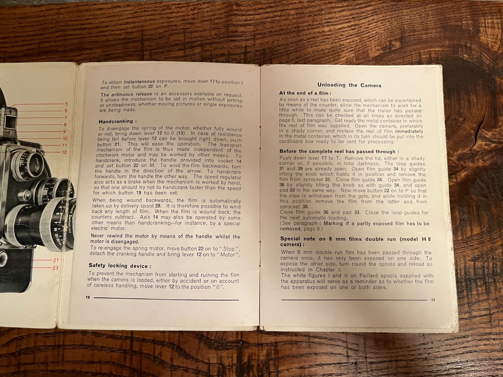 Paillard Bolex H8 H Series Vintage Movie Camera User Manual Instruction Book