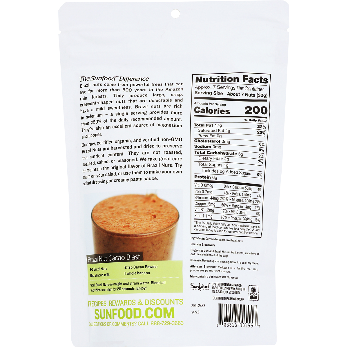 Sunfood Raw Organic Brazil Nuts Vegan Gluten-Free Kosher