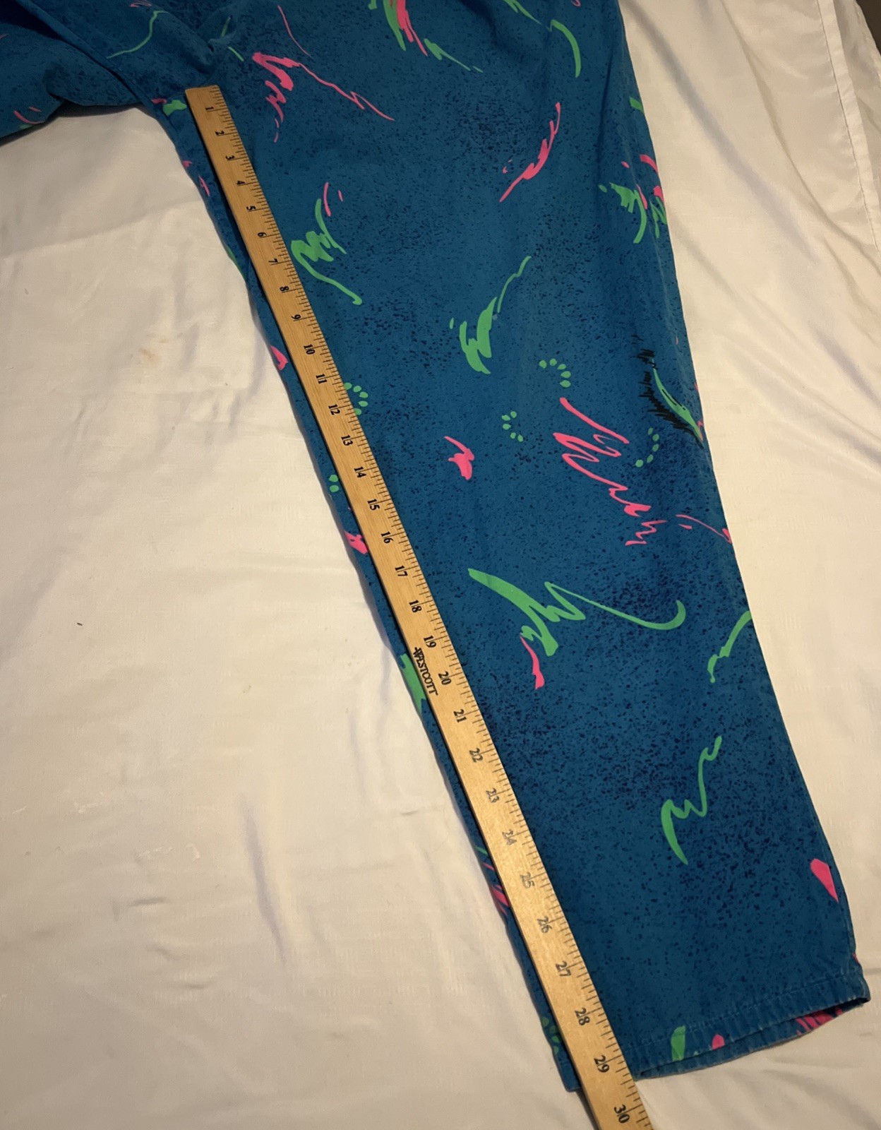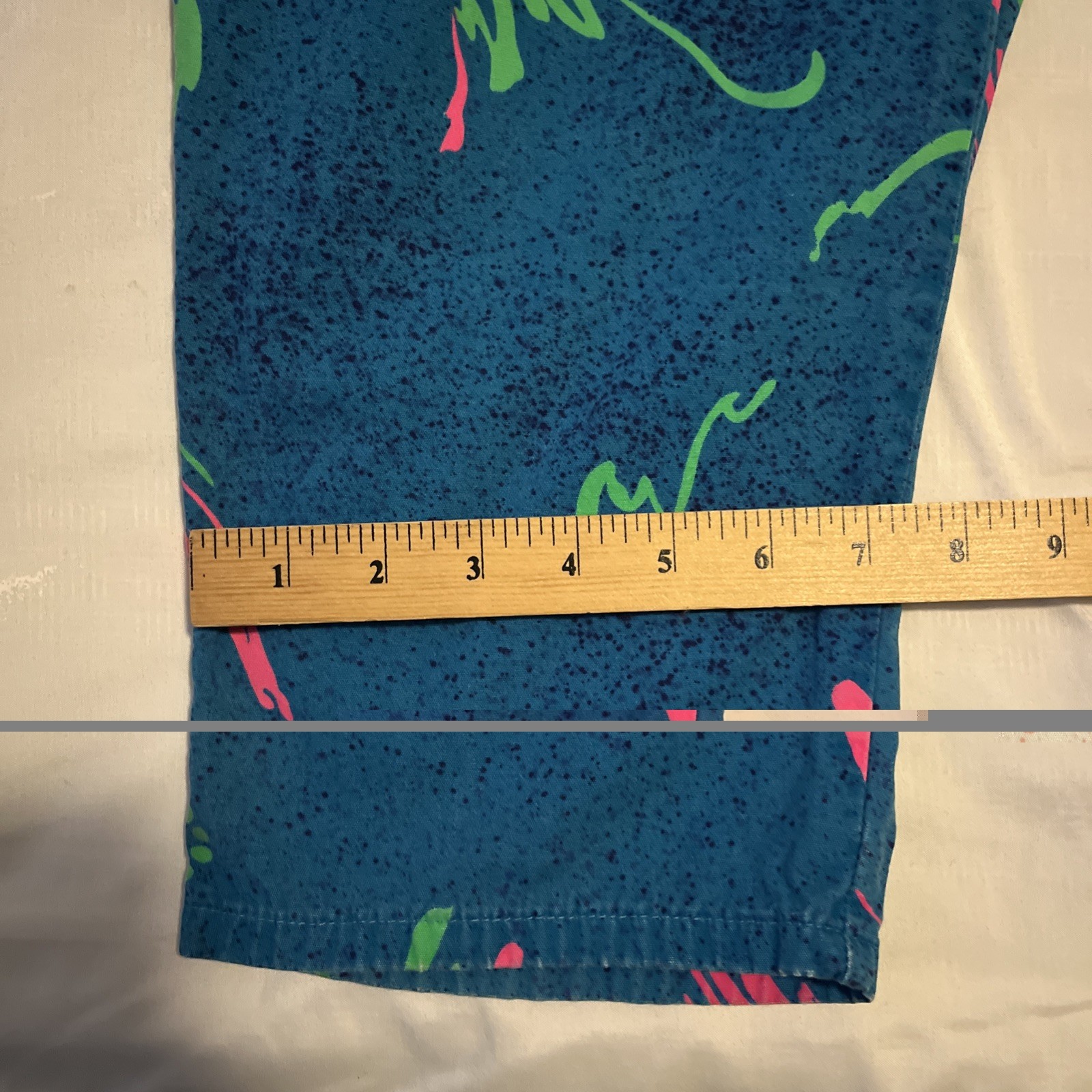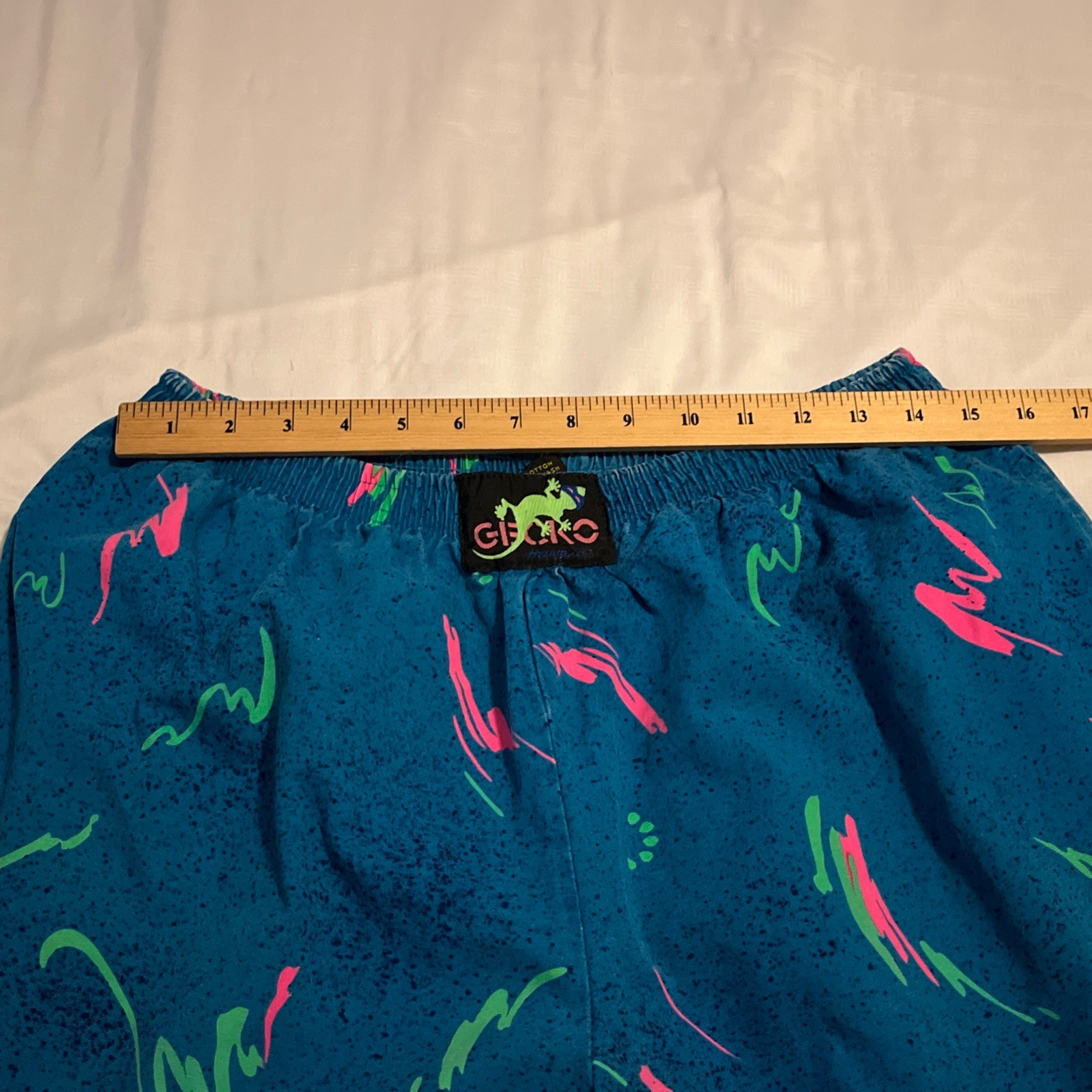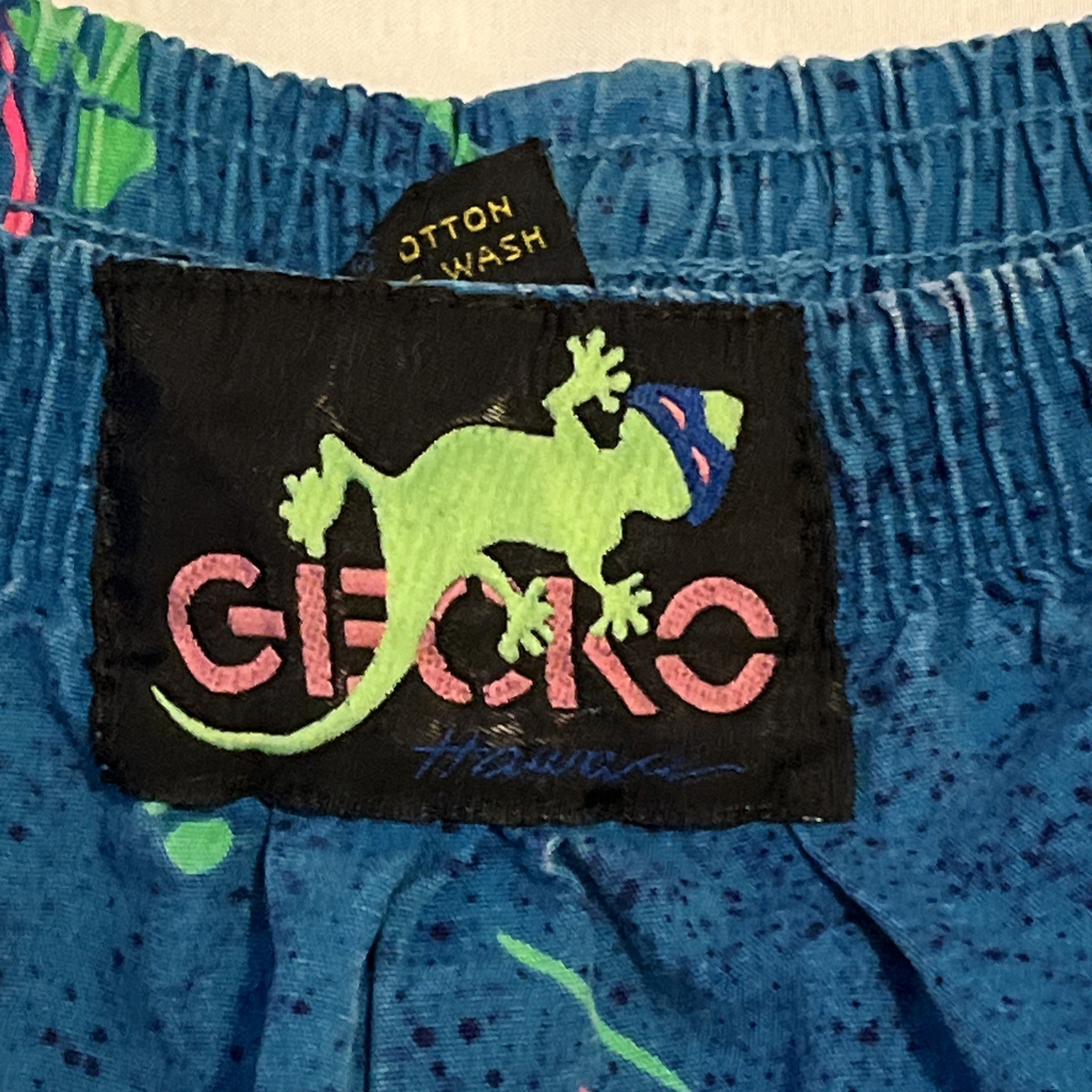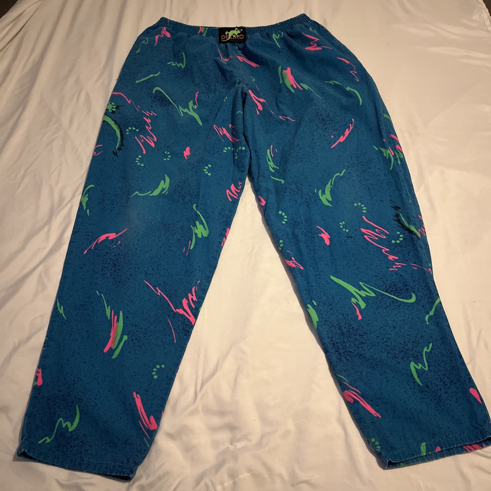 как выглядит Vtg 80 s 90 s Gecko Hawaii Beach Pants Made In USA Neon Splatter Teal M Rare фото