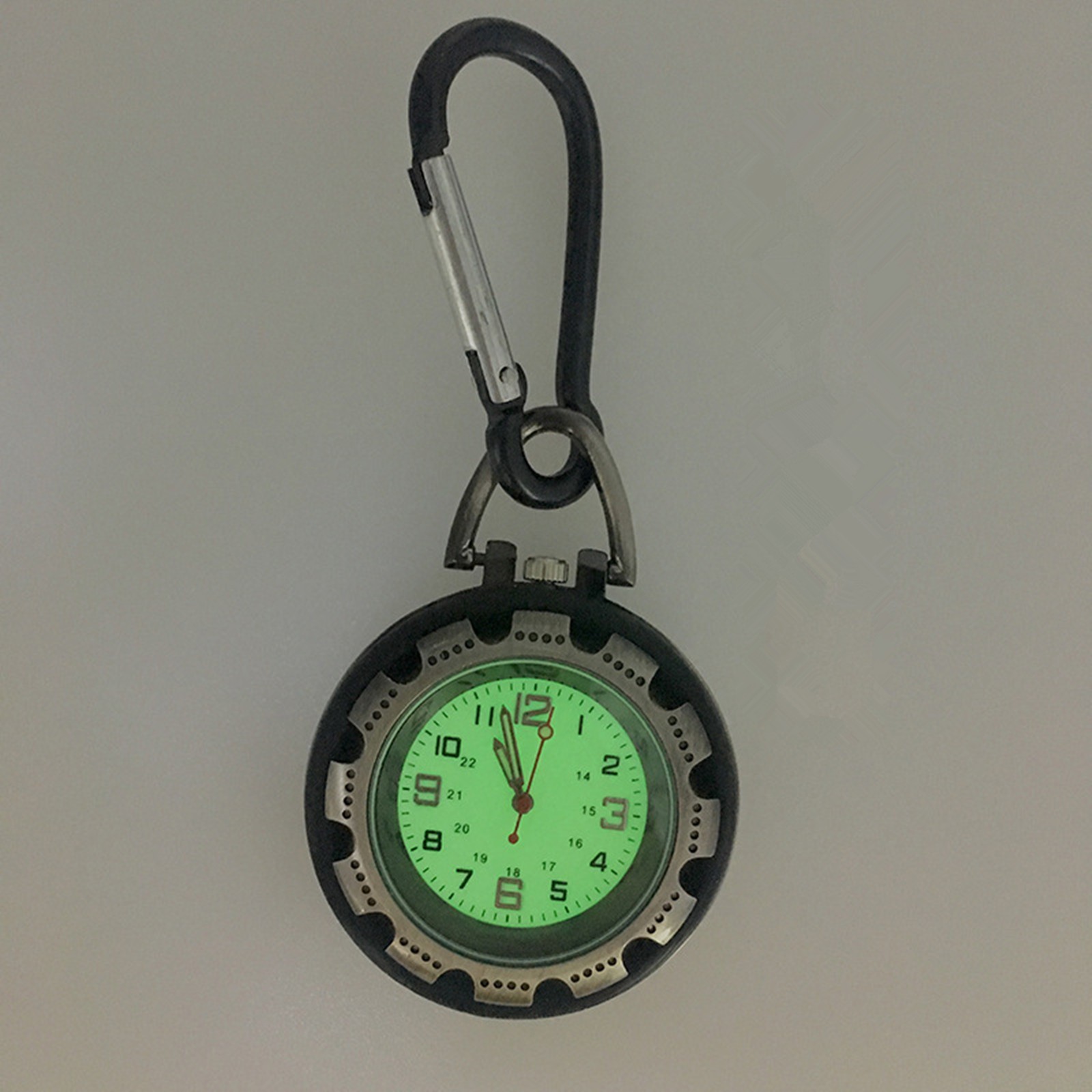Silver Backpack Clip-on Hook Carabiner Open Face Quartz Pocket Watch For Hiking