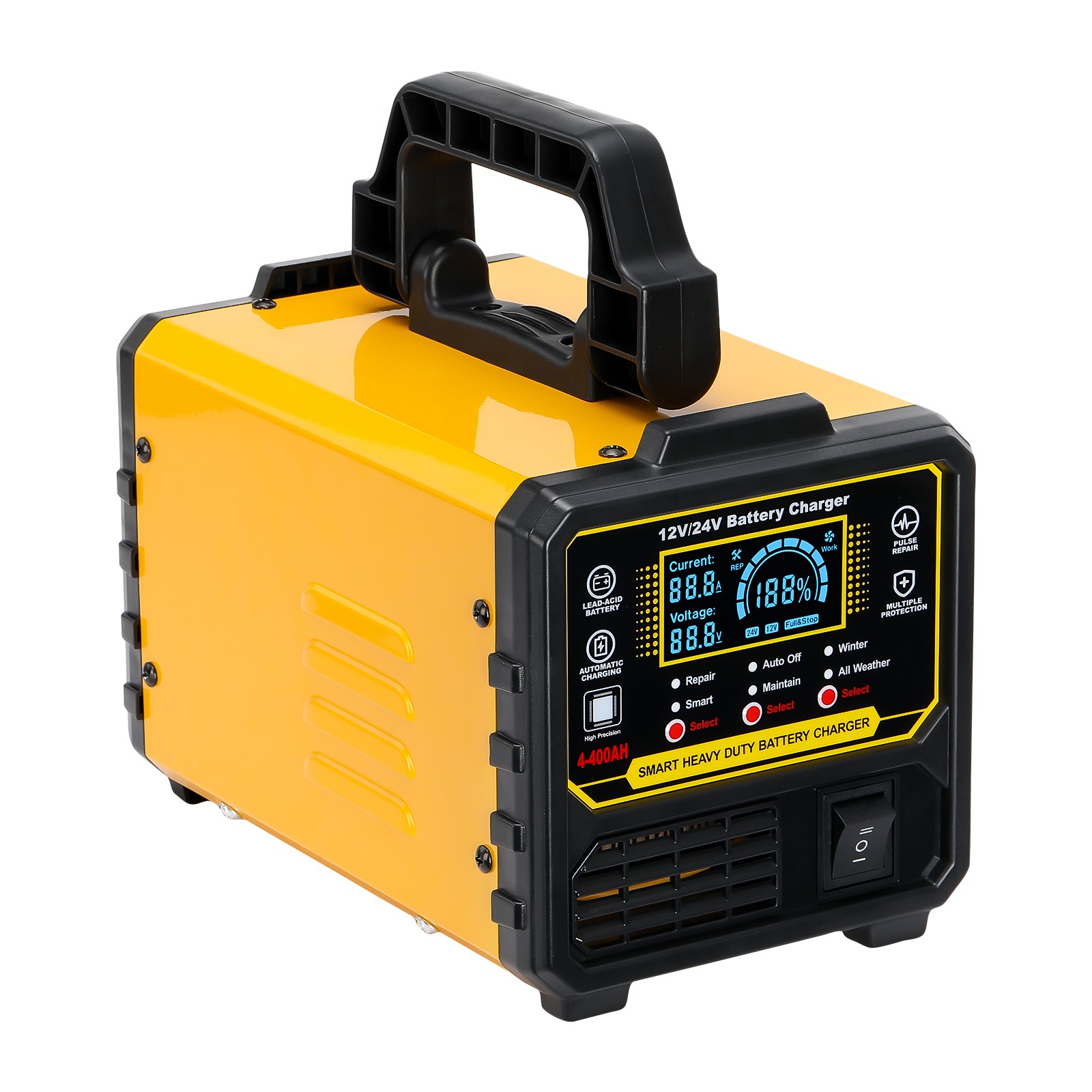 12V 24V Lead-Acid Battery Charger Heavy Duty 0-15A Automatic Battery Maintainer
