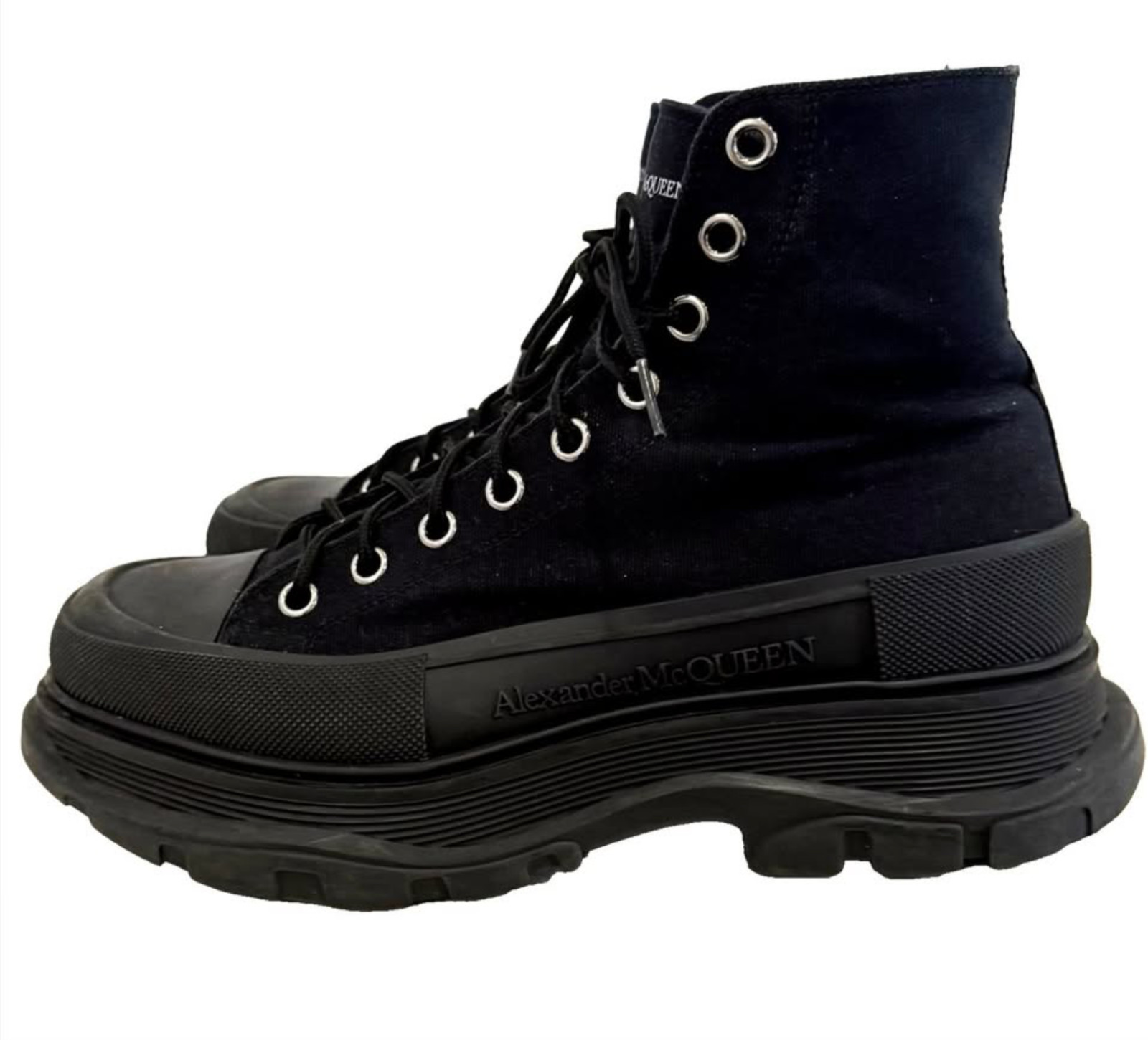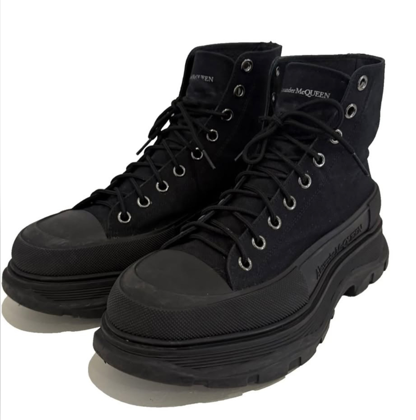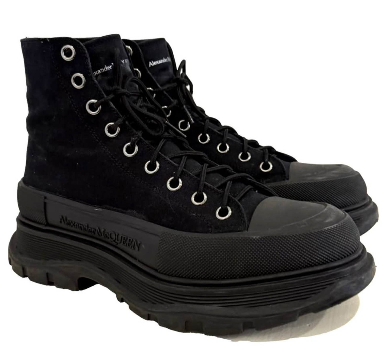Alexander McQueen Tread Slick Black Boots Mens Size 10 Original Box 43.5 Canvas