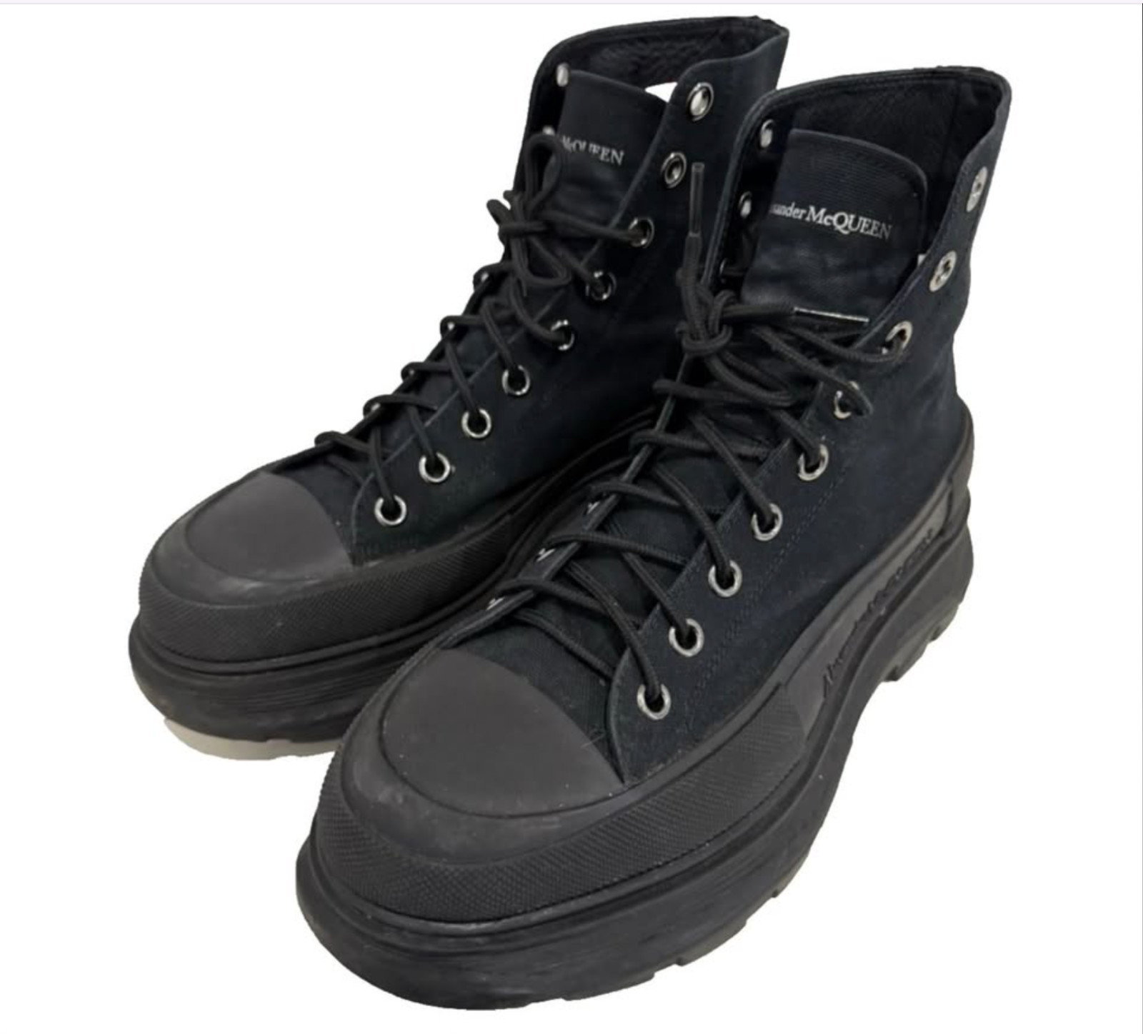 как выглядит Alexander McQueen Tread Slick Black Boots Mens Size 10 Original Box 43.5 Canvas фото