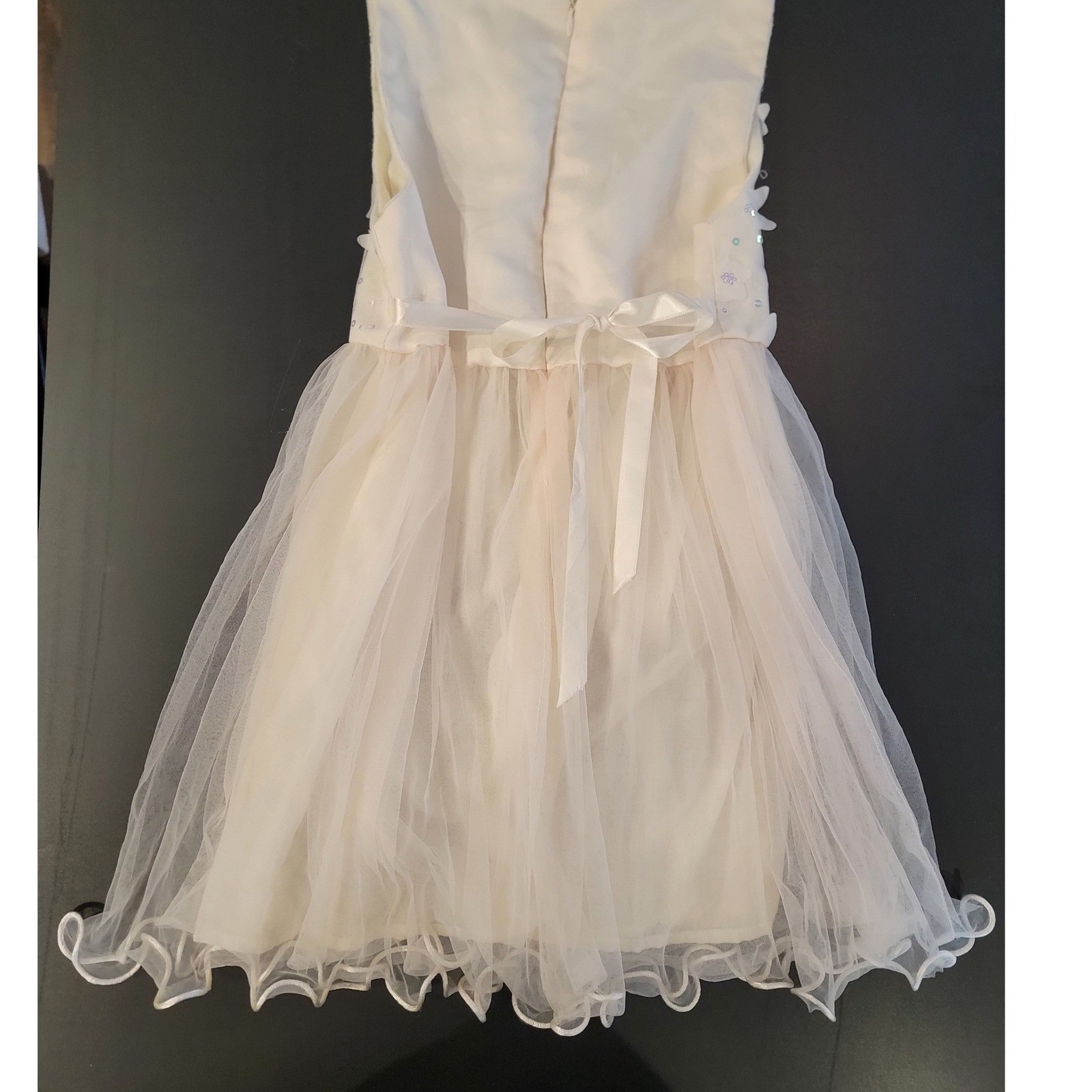 как выглядит Min Yu Girls Ivory Tulle Party Dress 3D Floral Sequin Flower Girl Size 11 фото