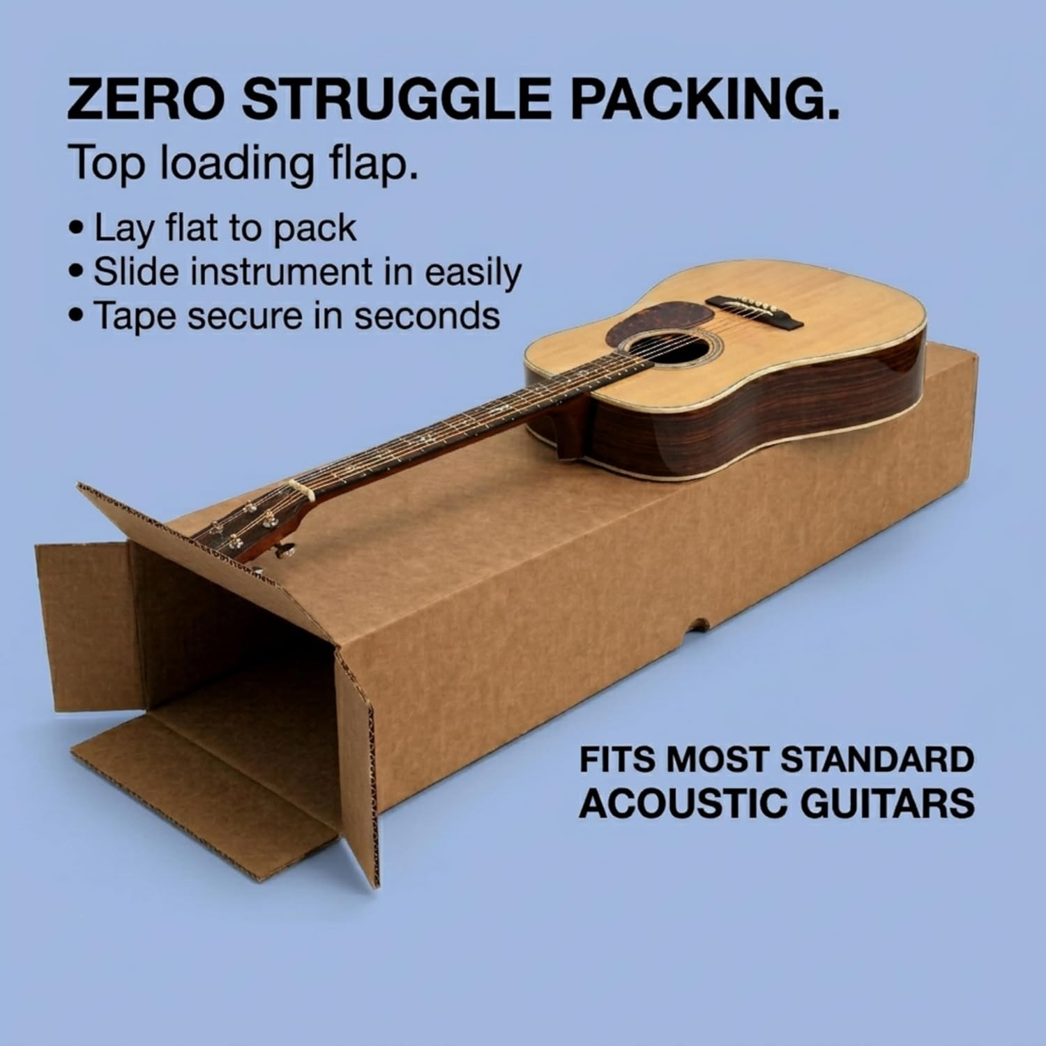 BFHD18645FOL Guitar Cardboard Boxes, 18 X 6 X 45, Side Loading Corrugated,...