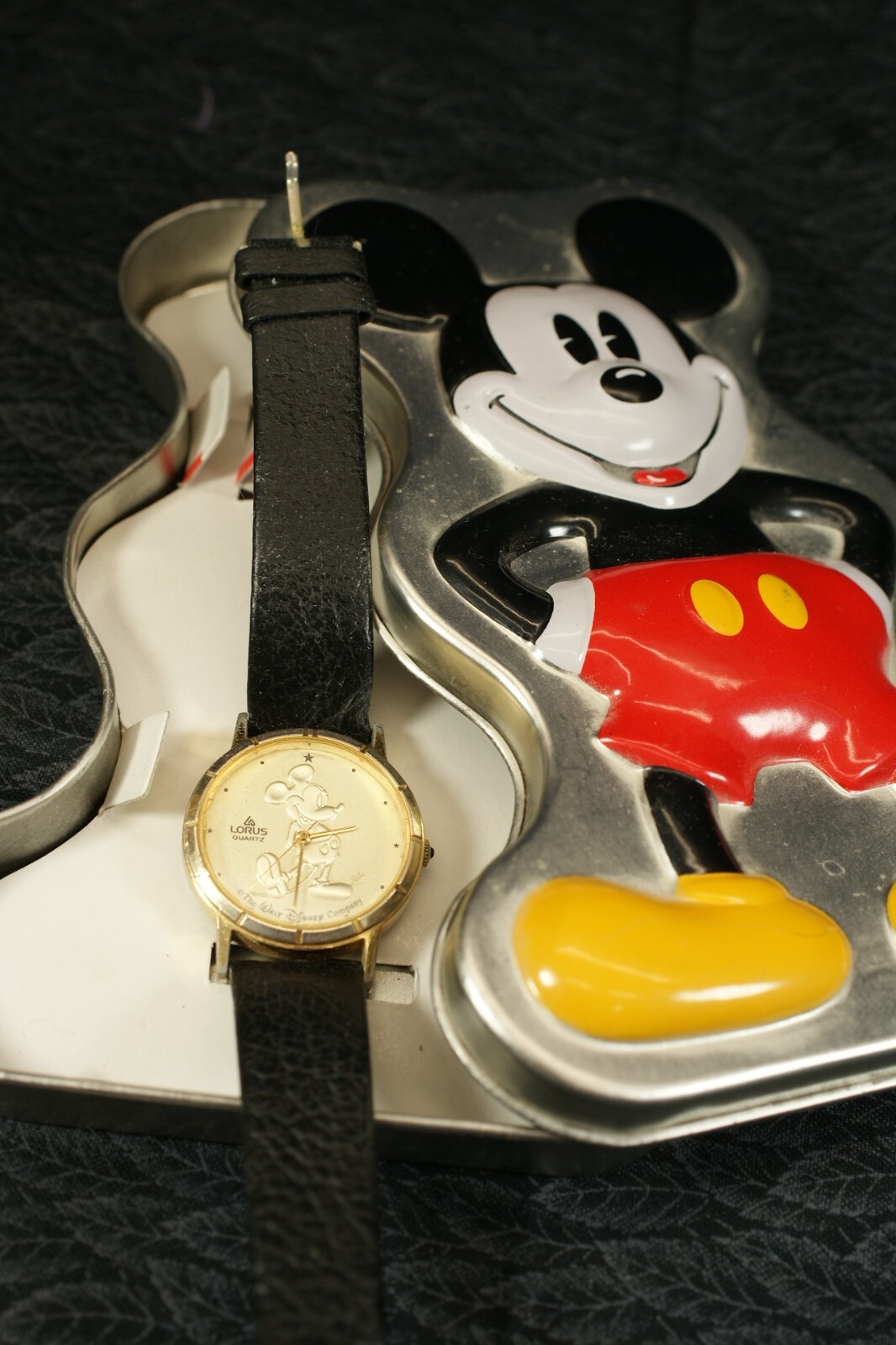 как выглядит Vintage Watch, Mickey Mouse, Disney Works w/Case, Leather Band фото