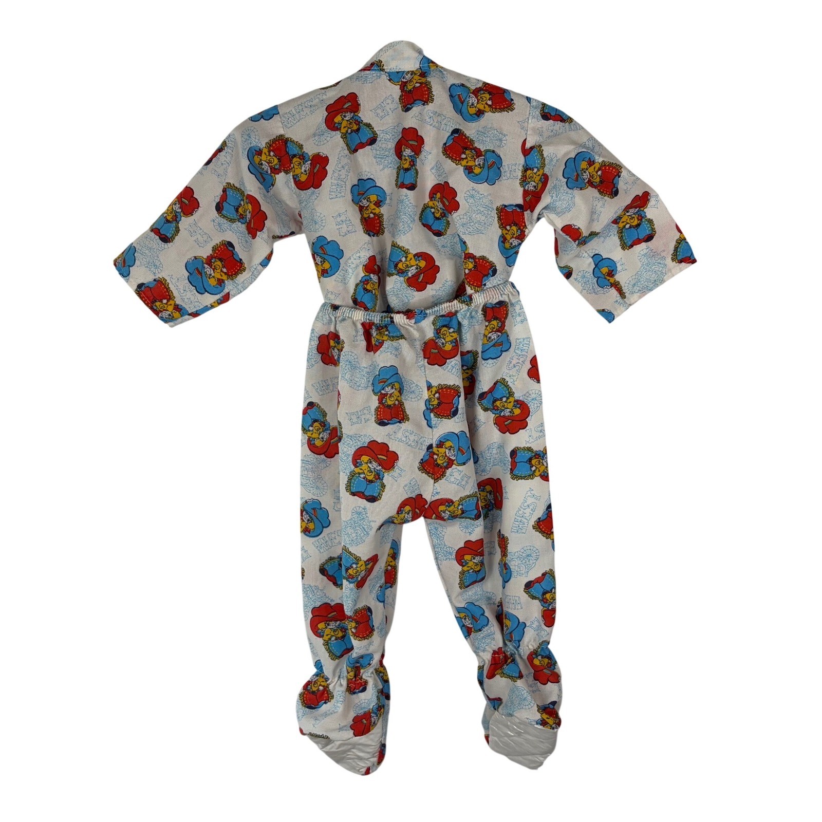Vintage Baby Cowboy Print Footed Pajama Set 2Pc White Western Cartoon