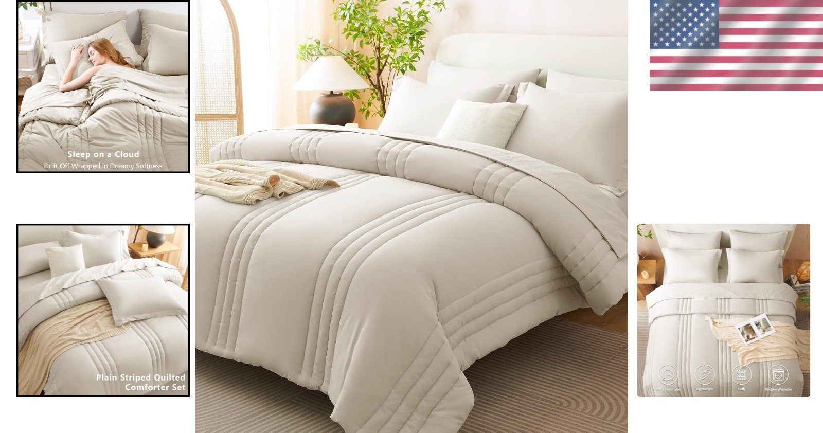 Contemporary 7-Piece Queen Comforter Set with Soft Down Alternative - Beige