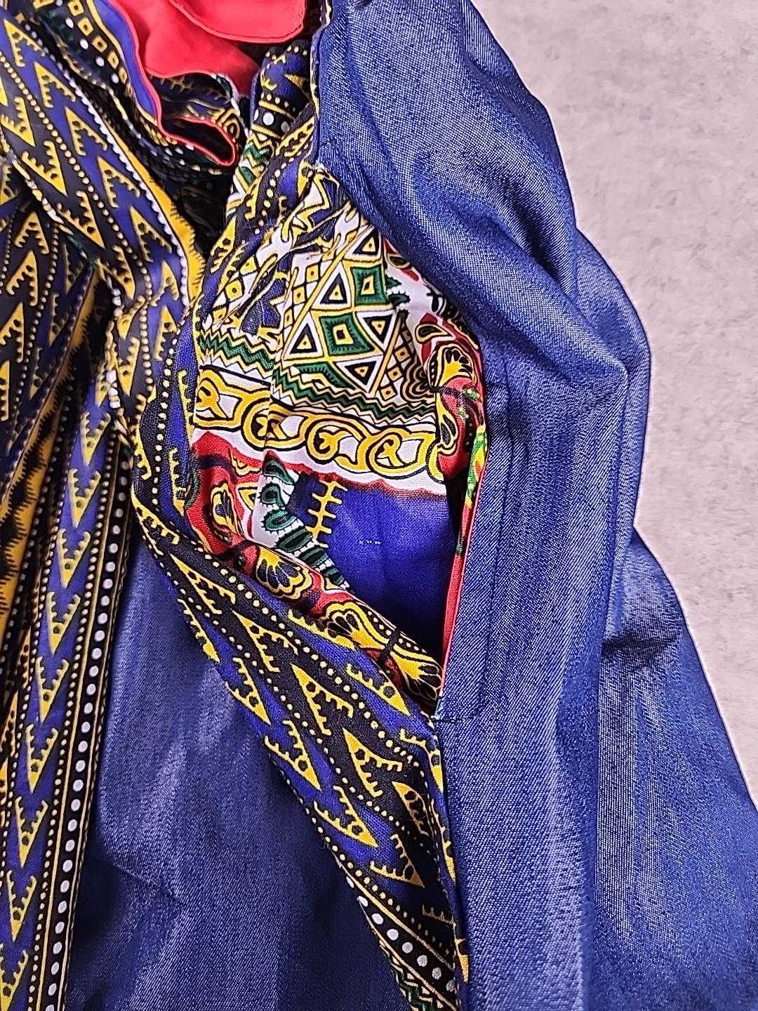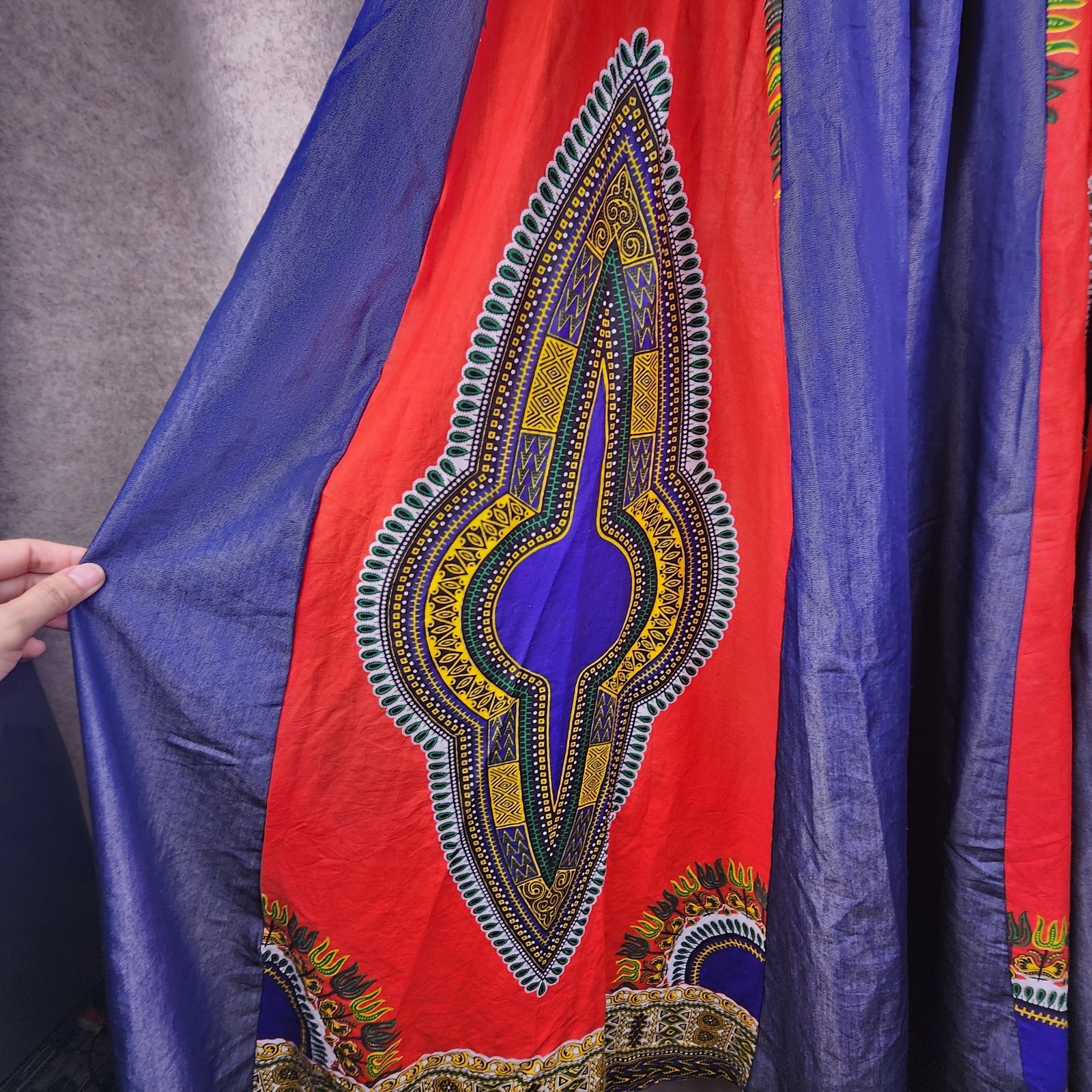 как выглядит Traditional African Blue Multi Color Print Maxi Skirt Pockets ONE SIZE EUC фото