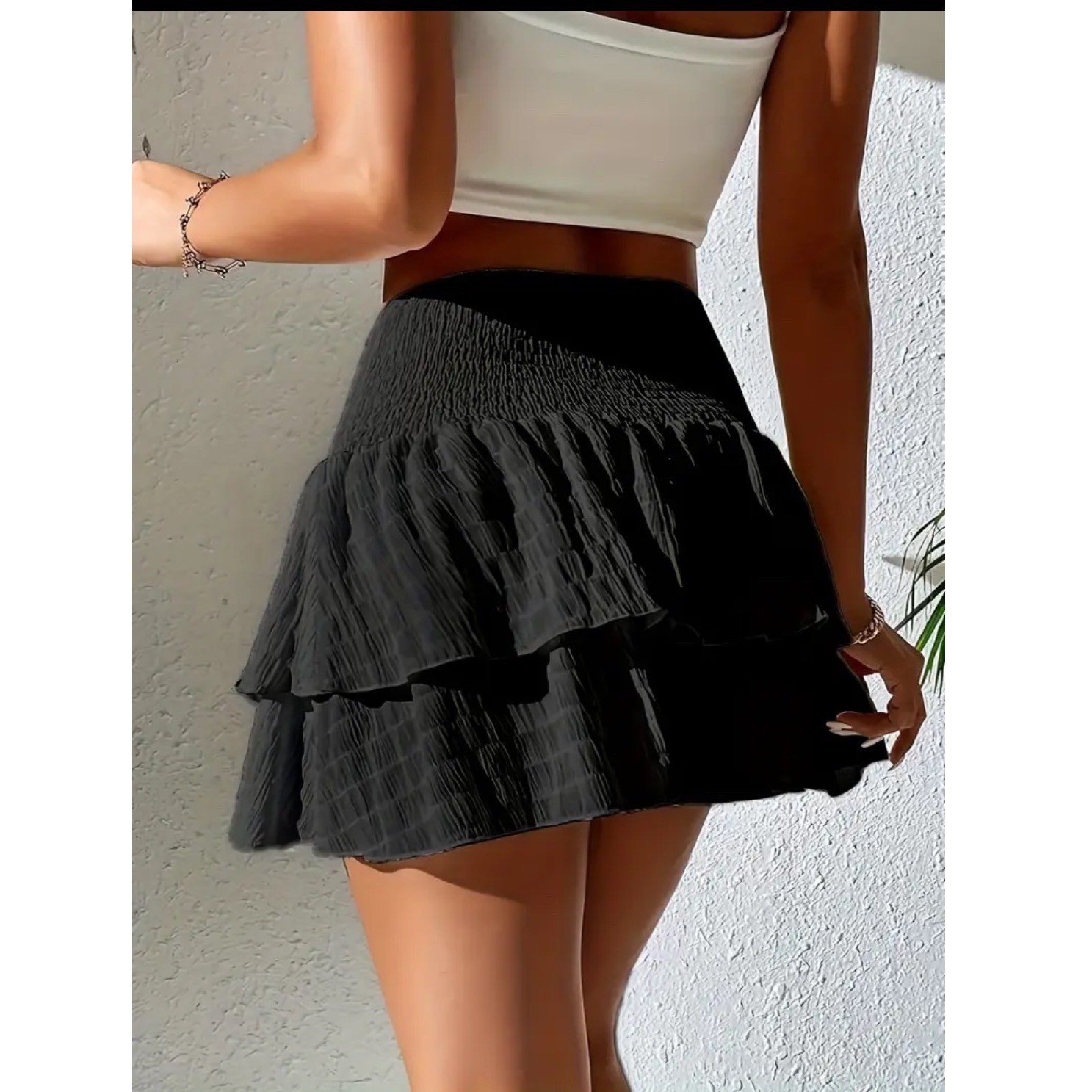Witchy Whimsygoth Vampy Dark Fairy Black Stretch Ruffle Mini Short Tiered Skirt