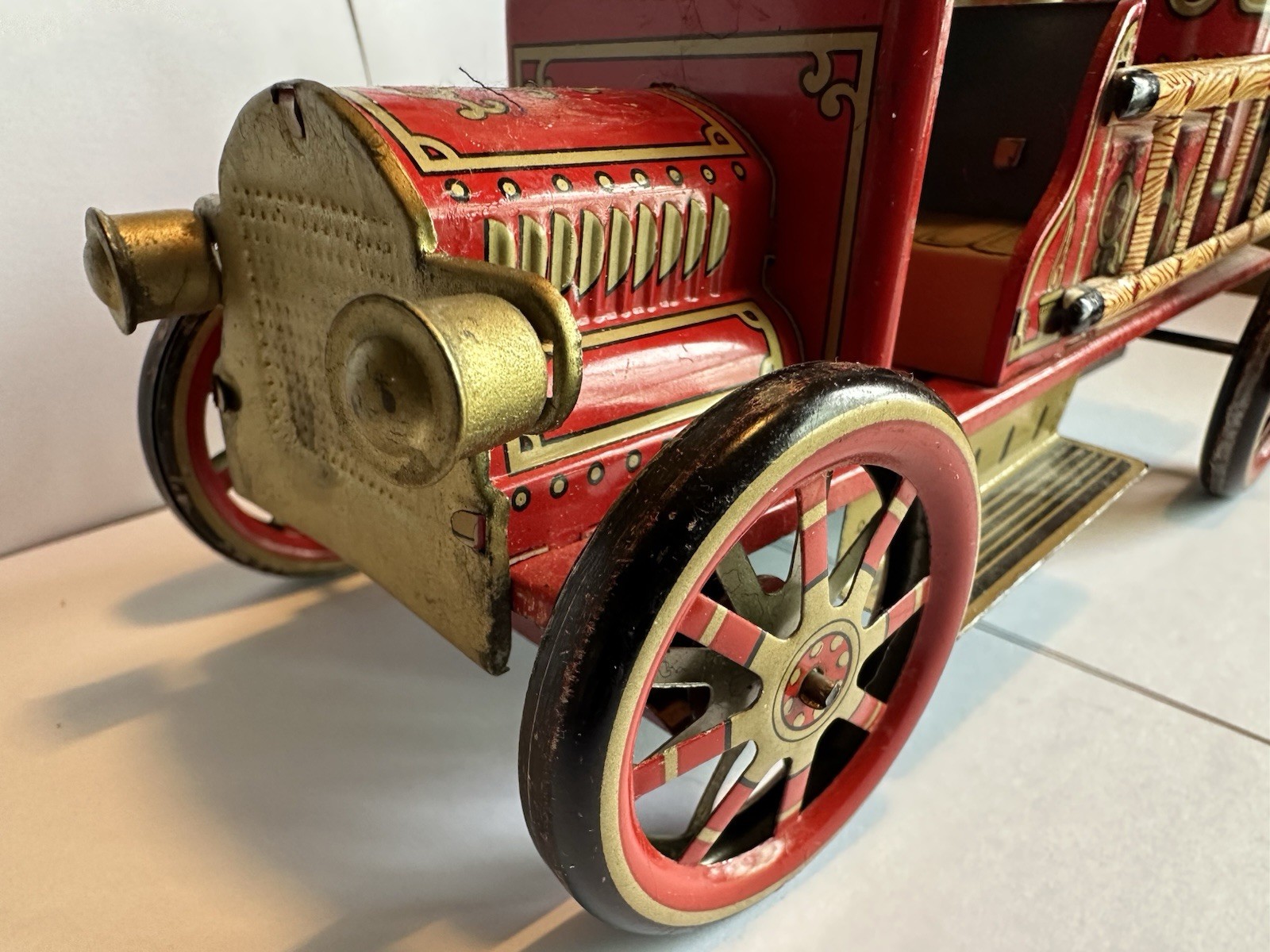 как выглядит c1950 Vintage 8" Tin Fire Engine Toy Truck Japan Modern Toys Antique Fireman фото