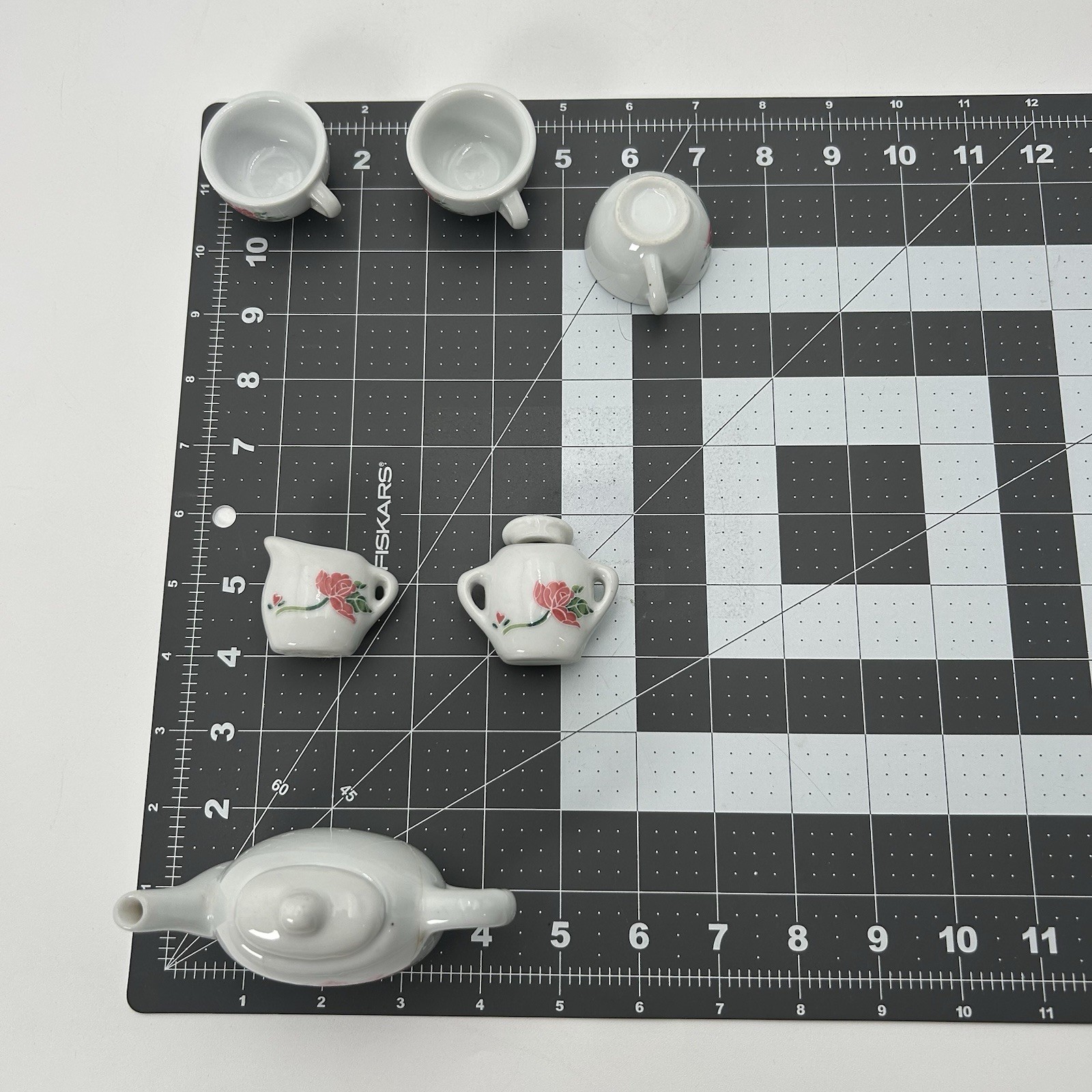 Mini Porcelain Tea Set Floral Teapot Cups Dollhouse Pink Rose 8pc Sugar Jar