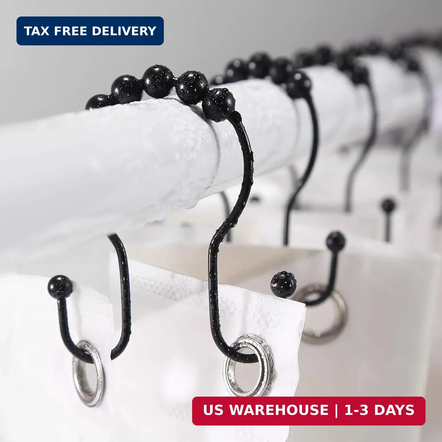Goowin Shower Curtain Hooks, 12 Pcs Shower Curtain Rings, Stainless Steel Black