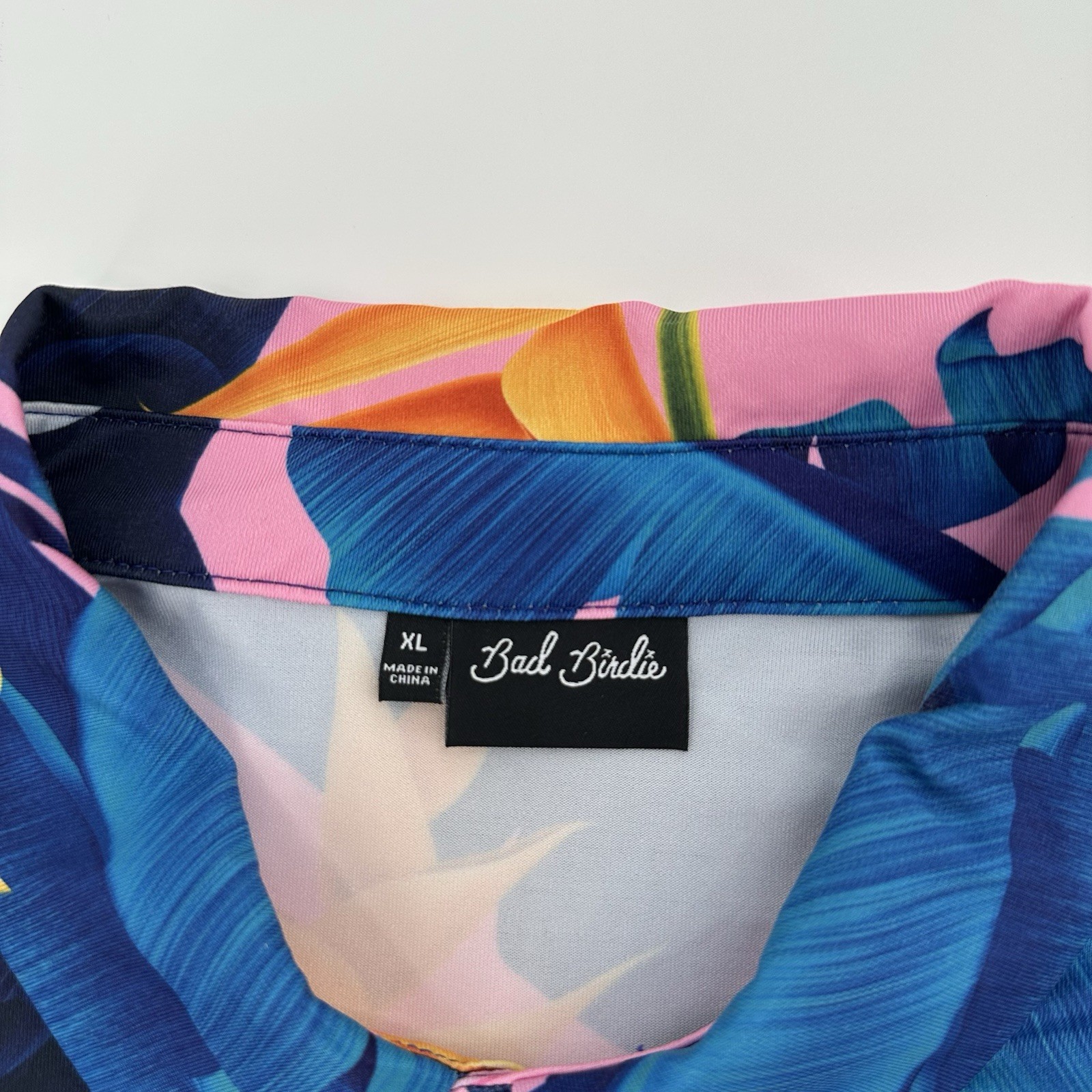 Bad Birdie Polo Shirt Mens XL Blue Toucan Floral Print AOP Golf Performance