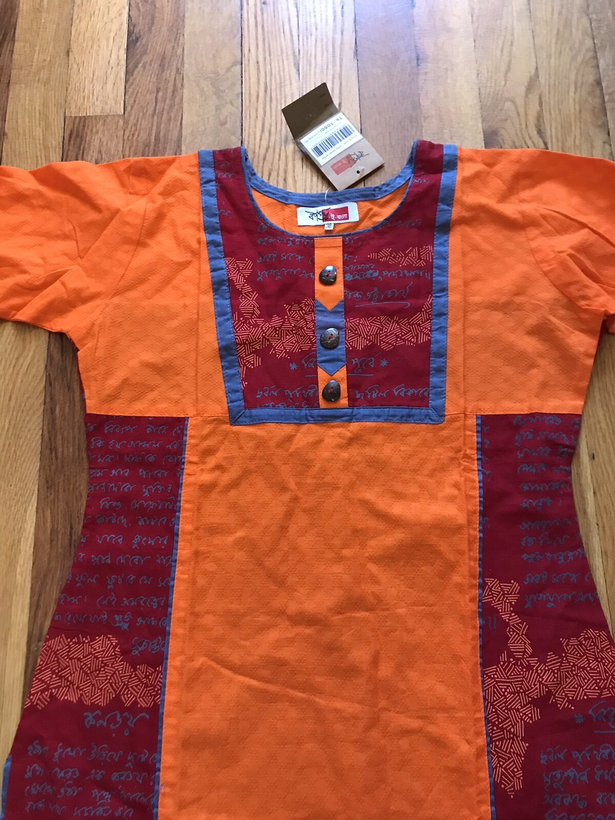как выглядит Indian Women Ethnicwear Small Kurti Kurta Orange 3/4 Sleeve Graphic Cotton Long фото