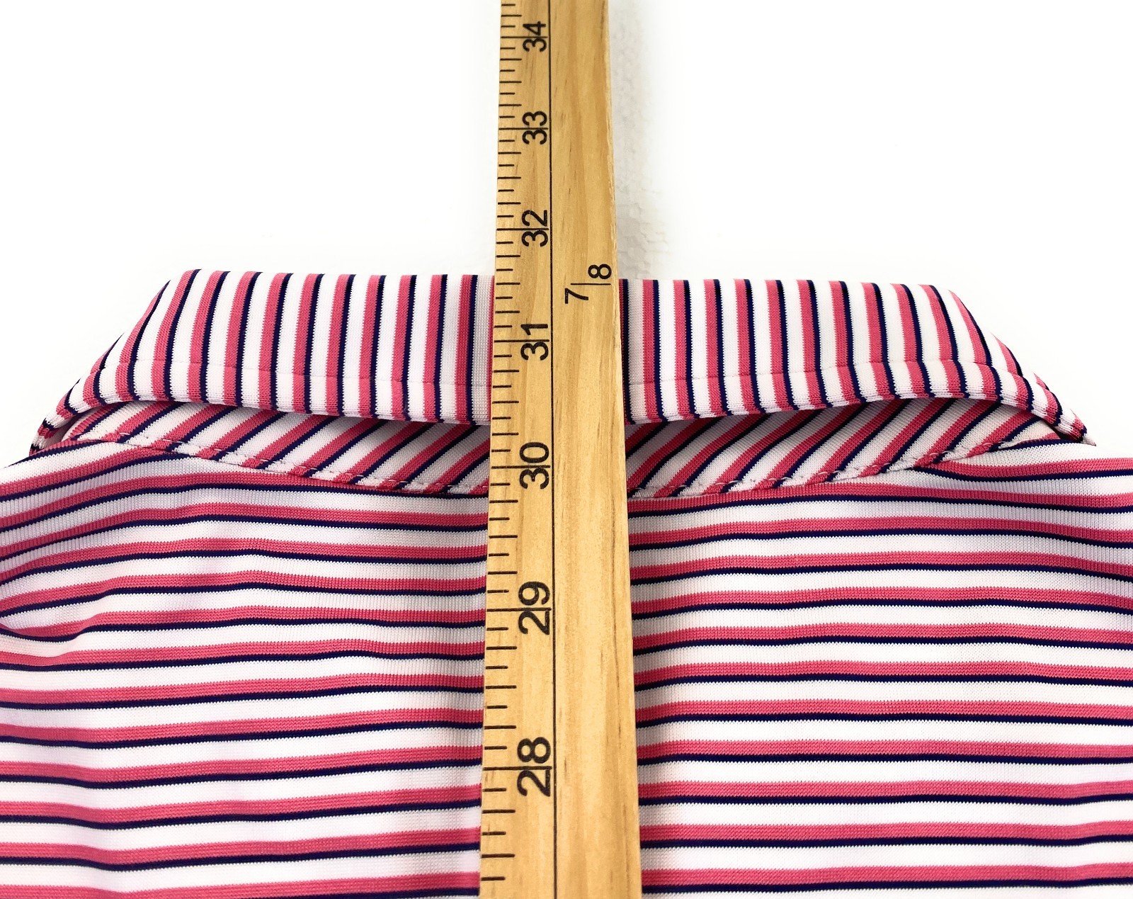 как выглядит NWT IZOD Golf Mens Swing Flex Performance Red Blue Stripe Polo Shirt Large фото
