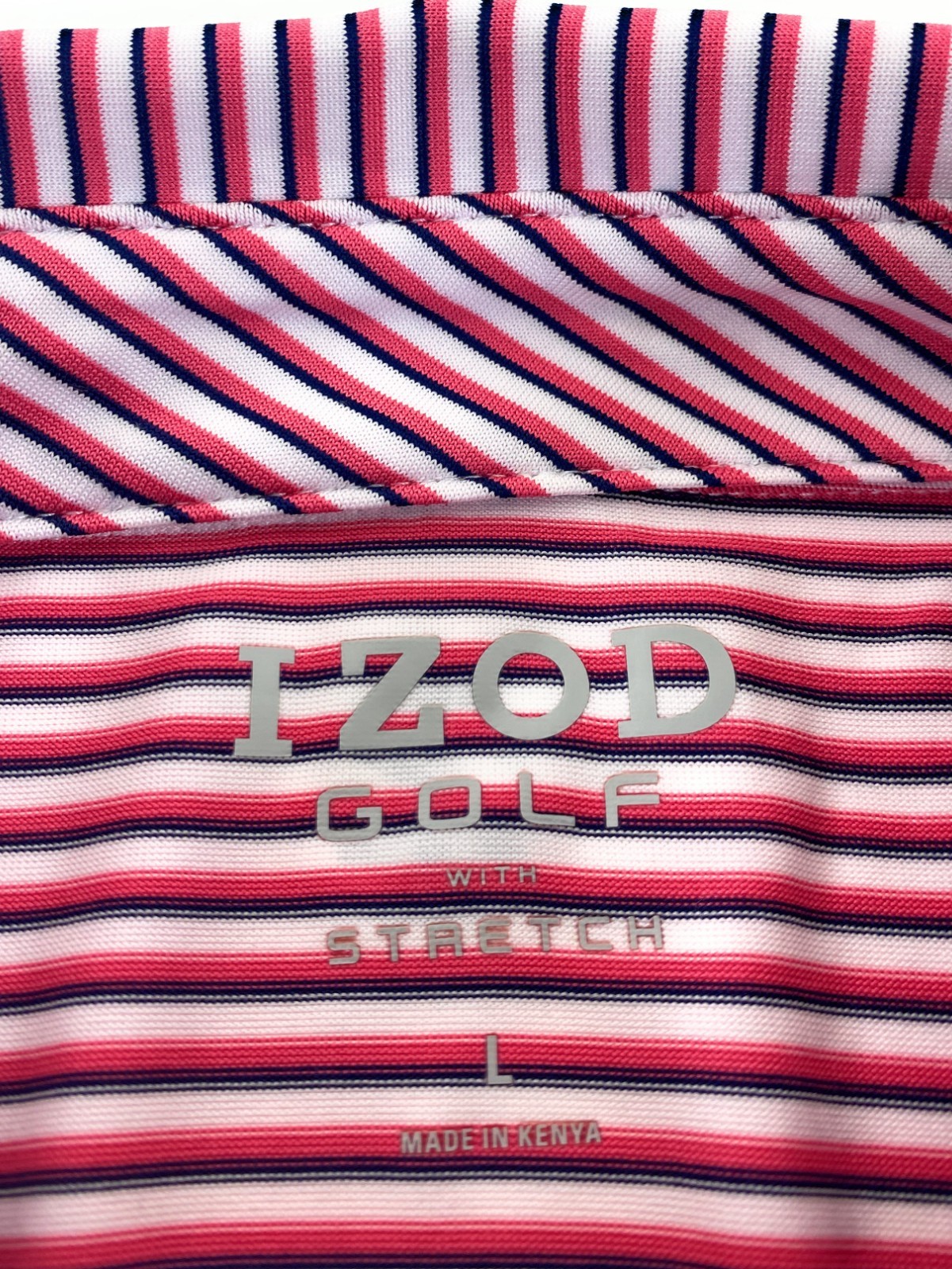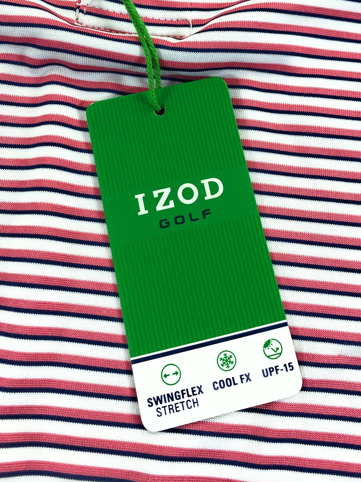 NWT IZOD Golf Men's Swing Flex Performance Red Blue Stripe Polo Shirt Large