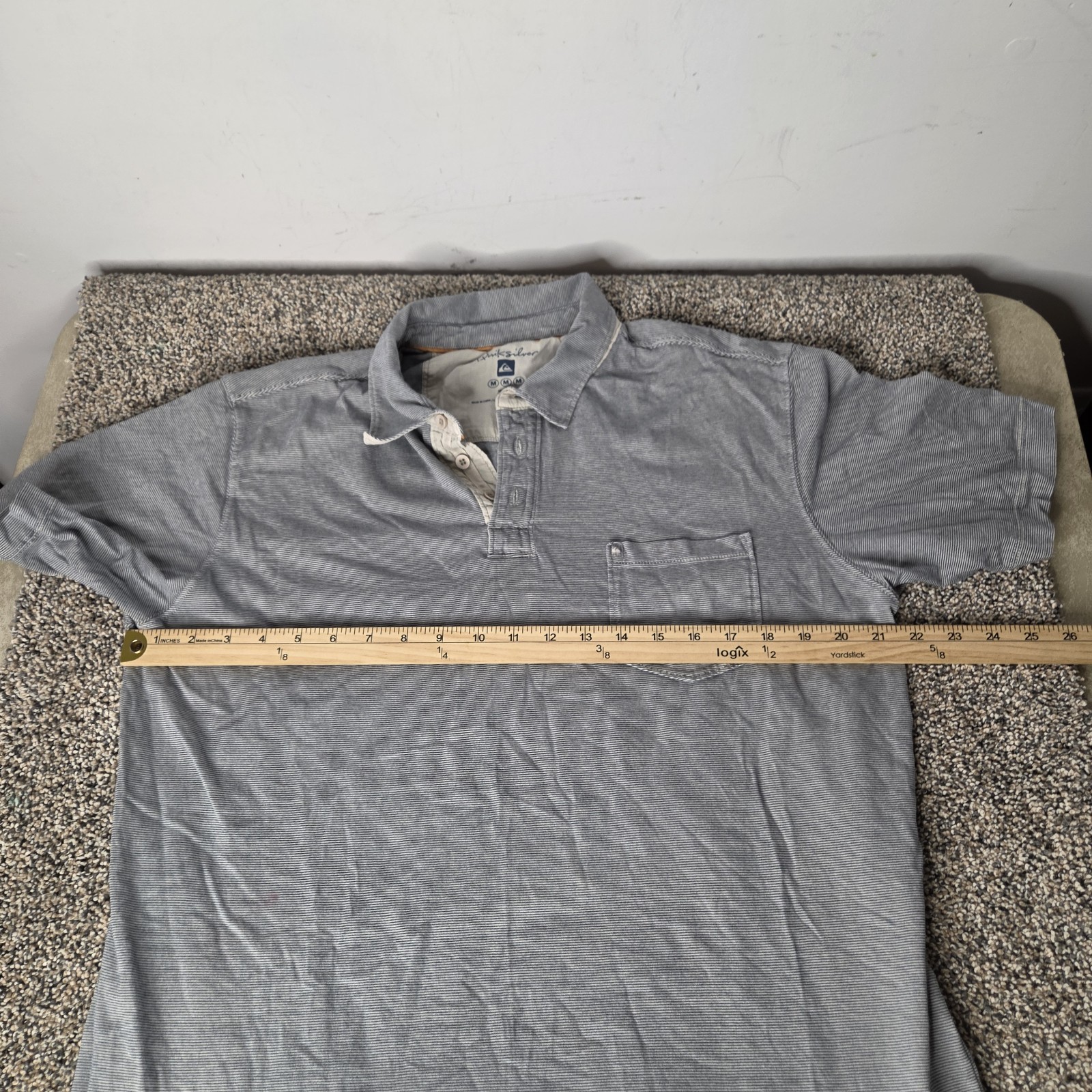 как выглядит Quiksilver Mens Medium Polo Short Sleeve Striped Cotton. Gray Front Pocket фото