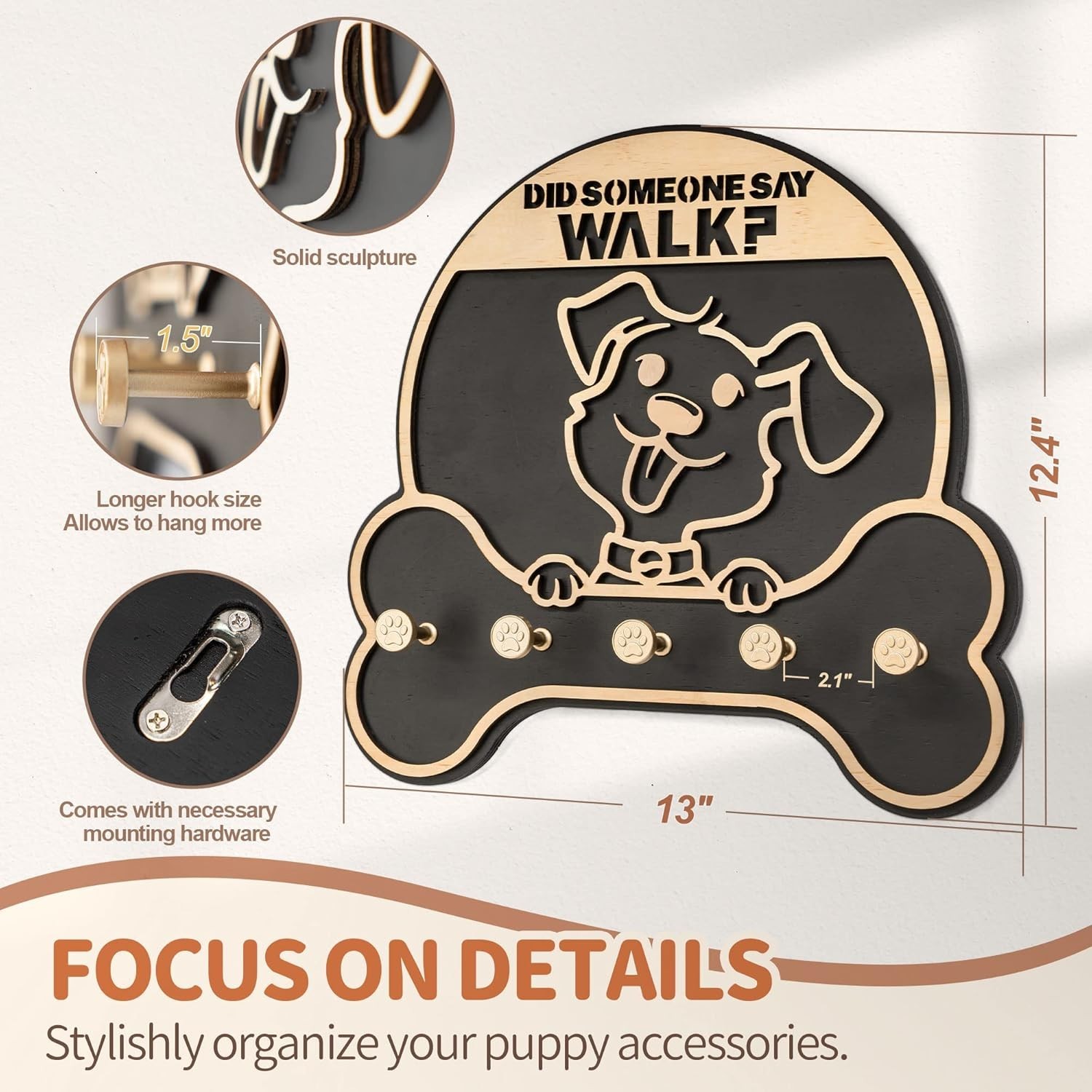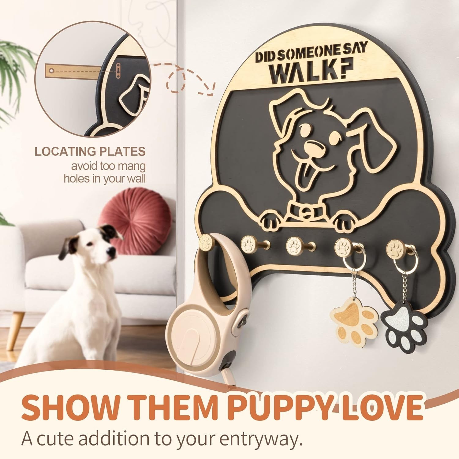 Charming Dog Leash Holder Key Organizer Wall Mount with 5 Hooks - Rustic Decor