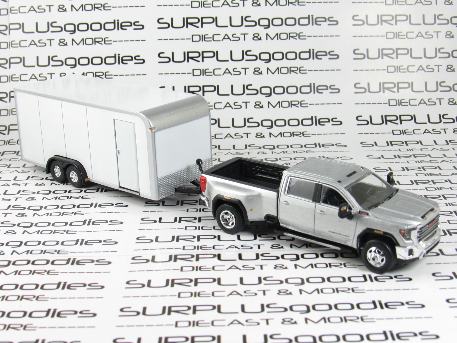 Greenlight LOOSE 2022 GMC SIERRA 3500 HD Dually Pickup w/White Enclosed Trailer
