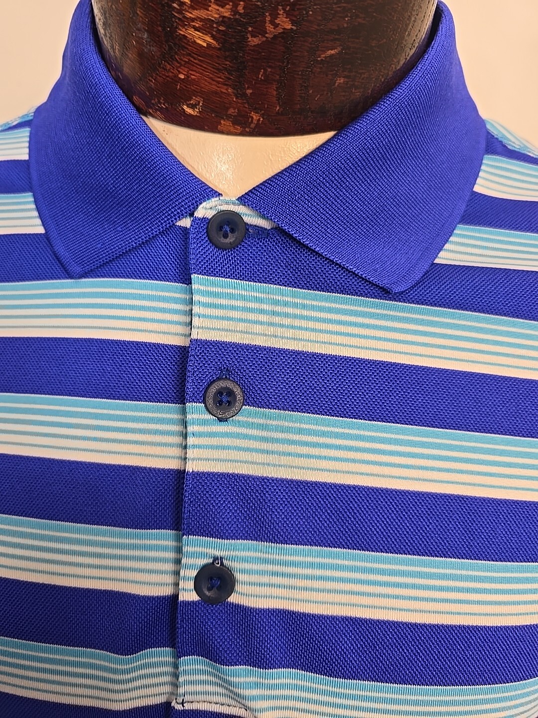 Nike Golf Mens Large Blue White Striped Short Sleeve Golf Polo Shirt