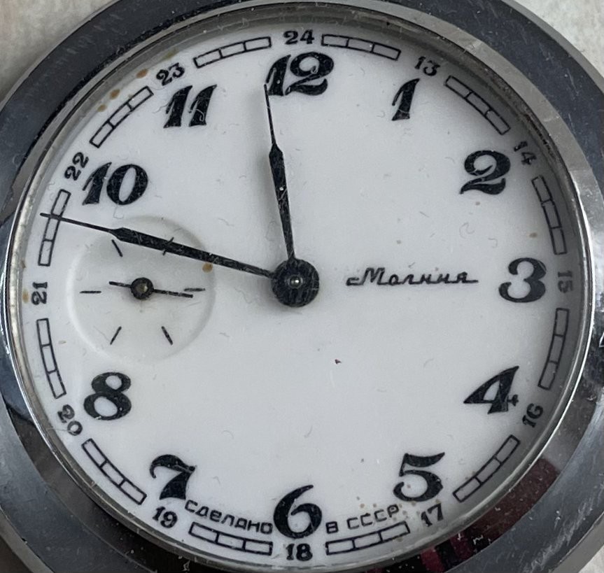как выглядит Vintage MOLNIJA Caliber 3602 USSR Mechanical Wind-up collectible Pocket Watch фото