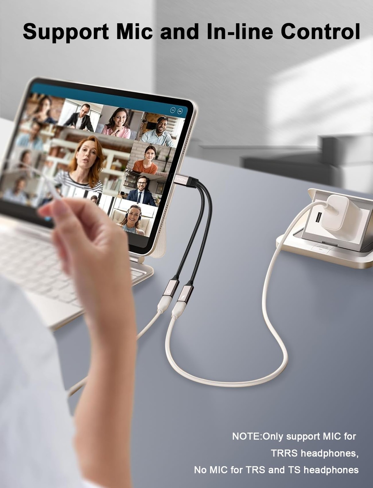 VIOY USB C Splitter 1 in 2 Out, Dual USB-C Headphone and Charger black