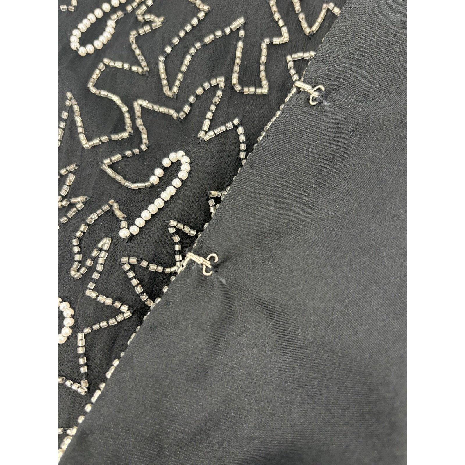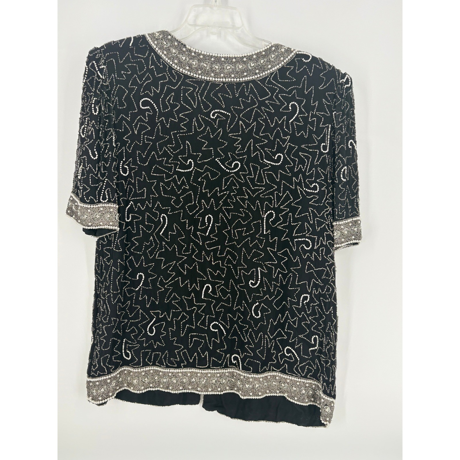 как выглядит Laurence Kazar New York Black Beaded Silk Jacket Open Front Occasion 1X фото