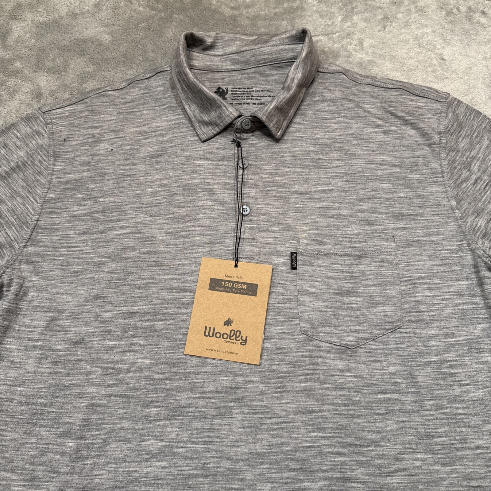 NWT Woolly Polo Shirt Mens XL Gray 100 Merino 150 GSM Short Sleeve