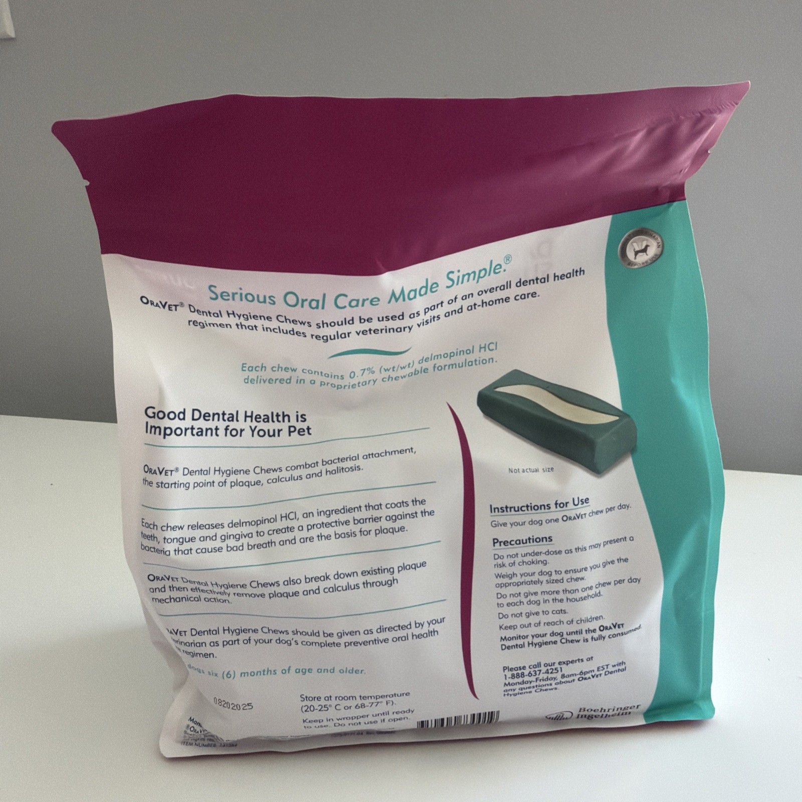 30 ORAVET Dental Chews Dogs Oral Care Hygiene Chews Large - EXPIRED 2025