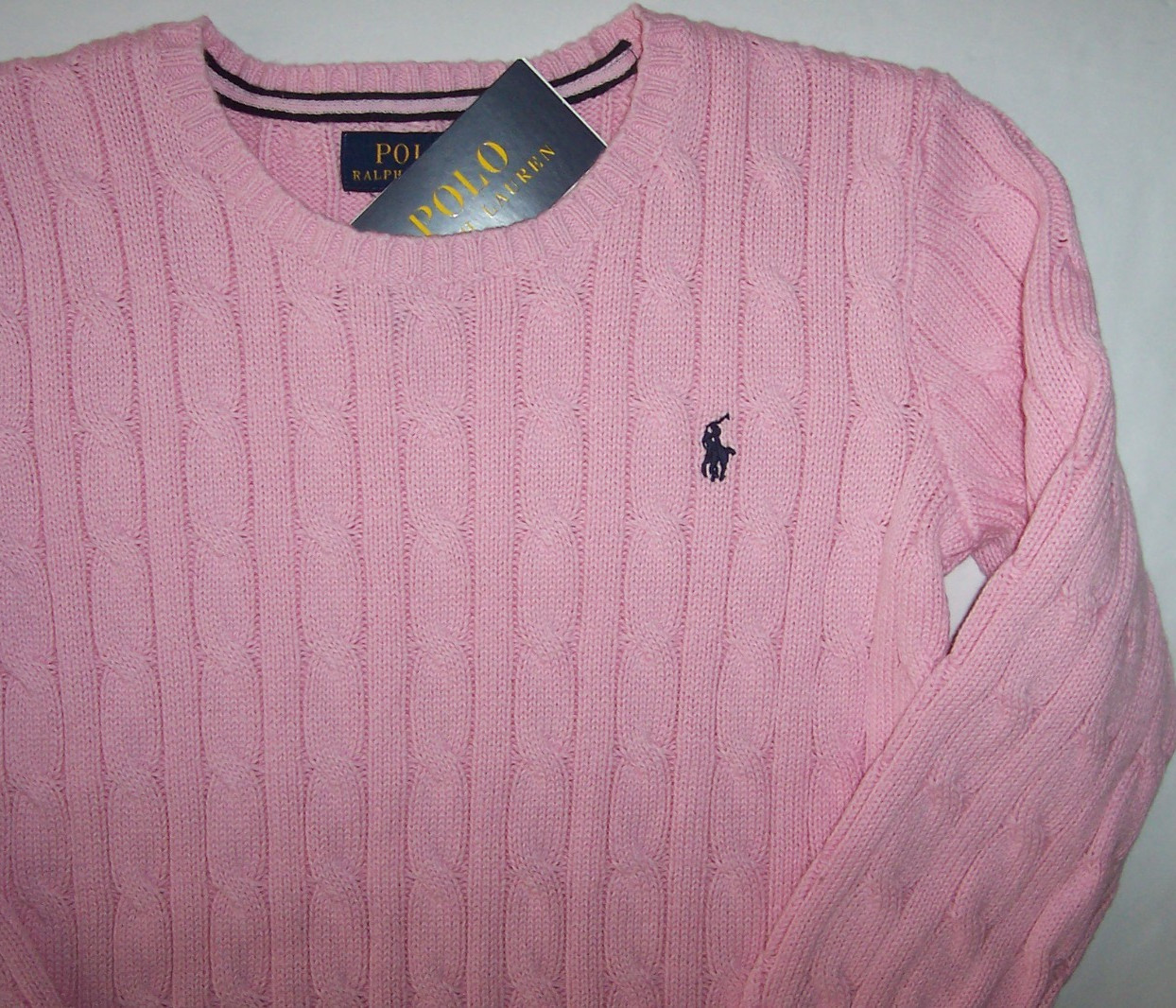 NWT Polo Ralph Lauren CARMEL PINK CABLE Knit Sweater Boy/Girl 6 NAVY PONY LOGO