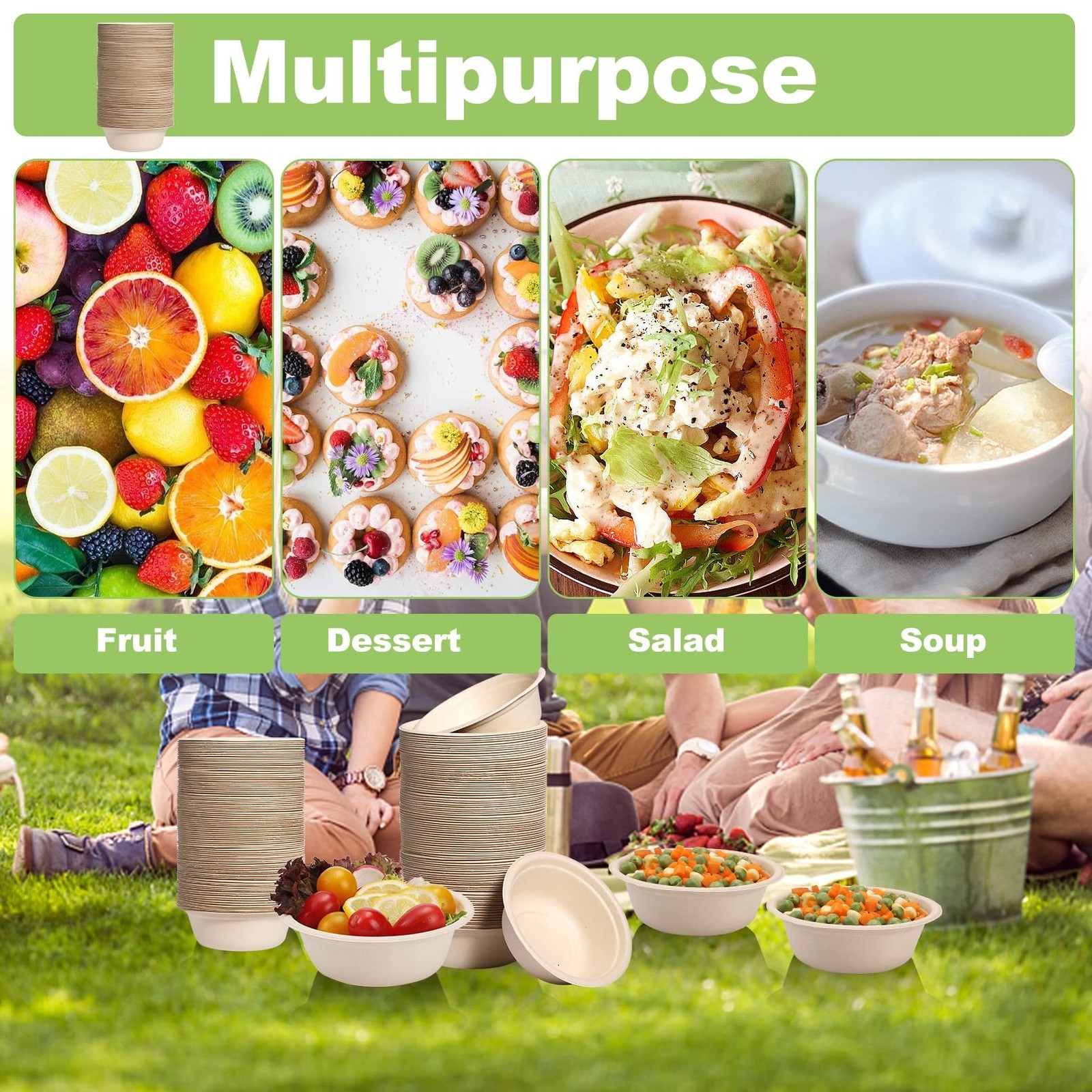 как выглядит 150 Pack Compostable Paper Bowls,16oz Heavy-Duty Disposable Paper Bowls,Natur... фото