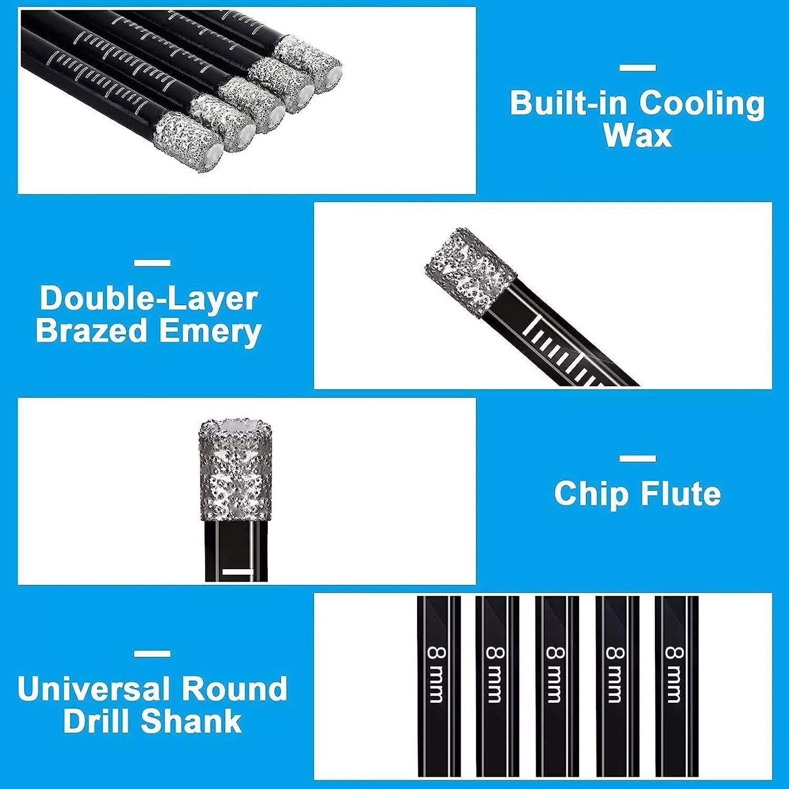 5PCS Dry Diamond Drill Bits For Porcelain Granite Tile Glass Ceramics Marble