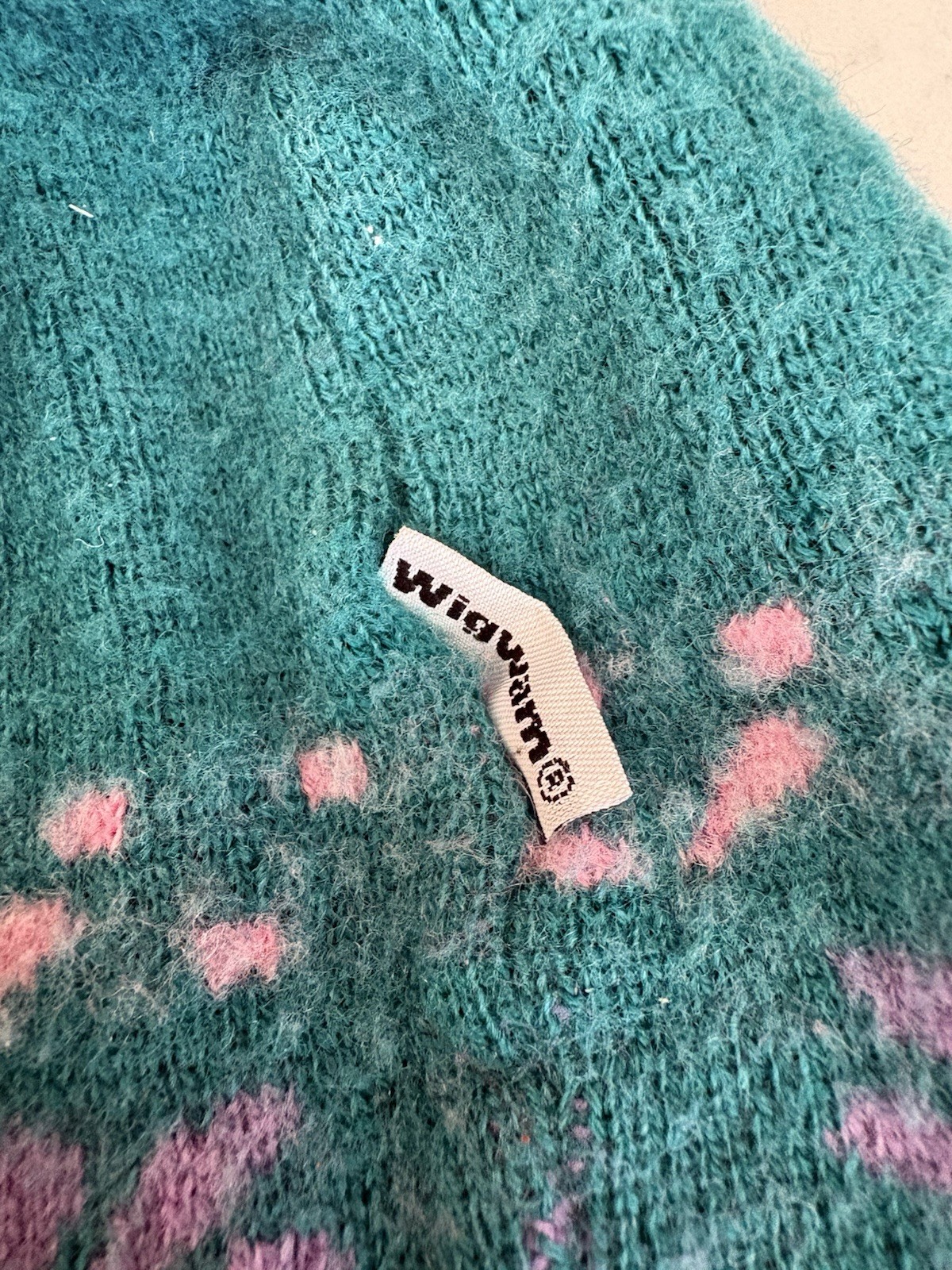 Vintage Wigwam Pompom Wool Knit Beanie Ski Hat Cap kids U.S.A. Purple Green