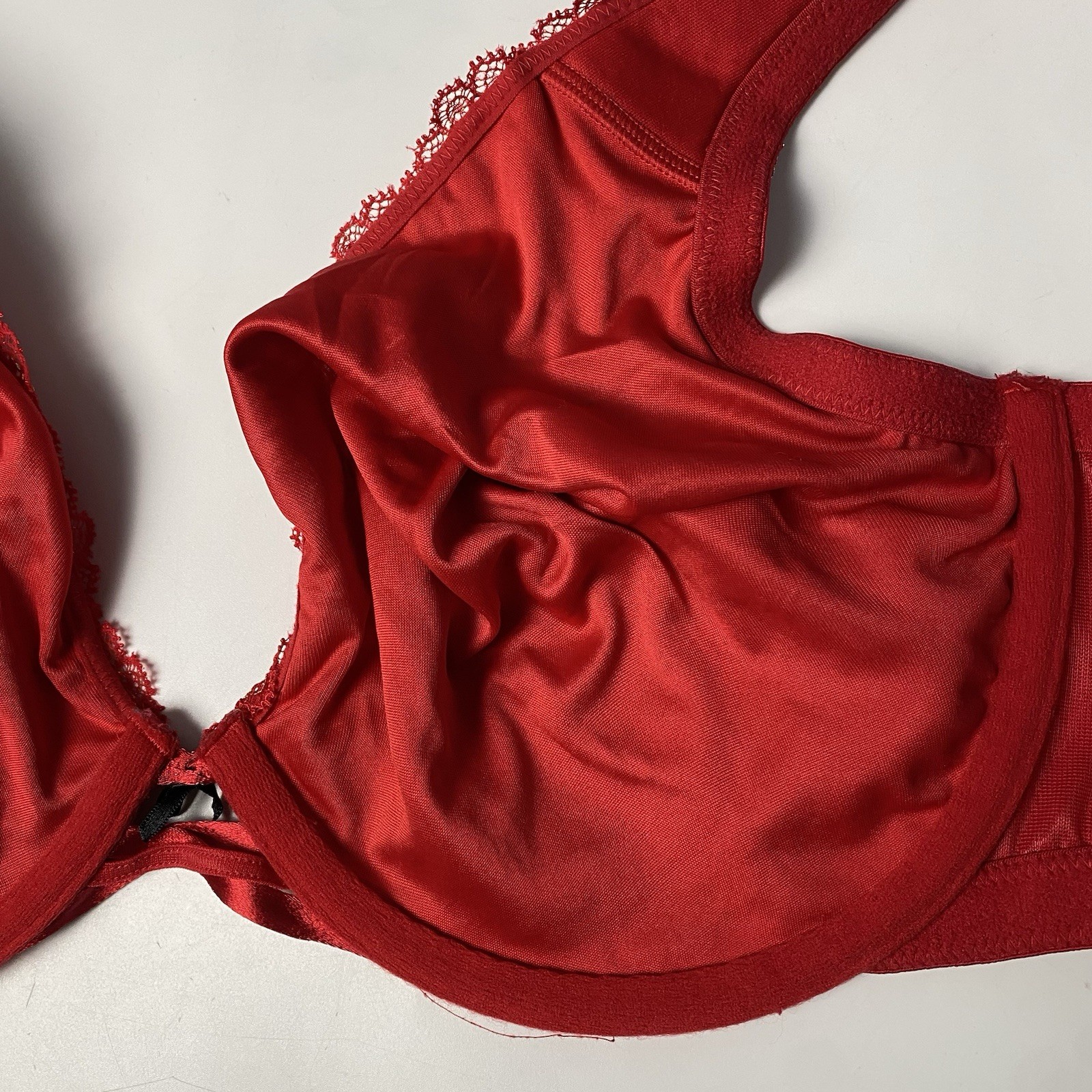 Cacique Red Plunge Unlined T-Shirt Bra Underwire Floral Lace Size 42DD
