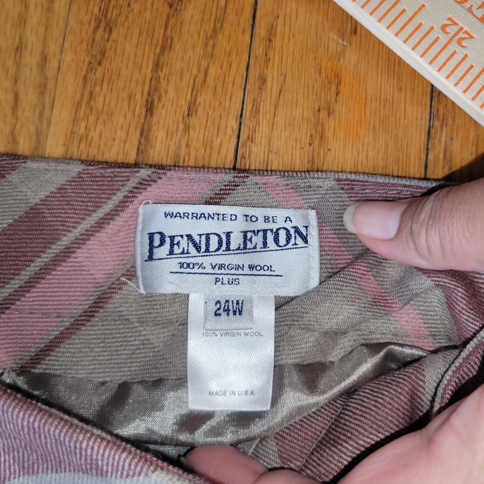 Vintage Pendleton Skirt Midi Virgin Wool Preppy Academia Plaid Red Sz 24 W Check