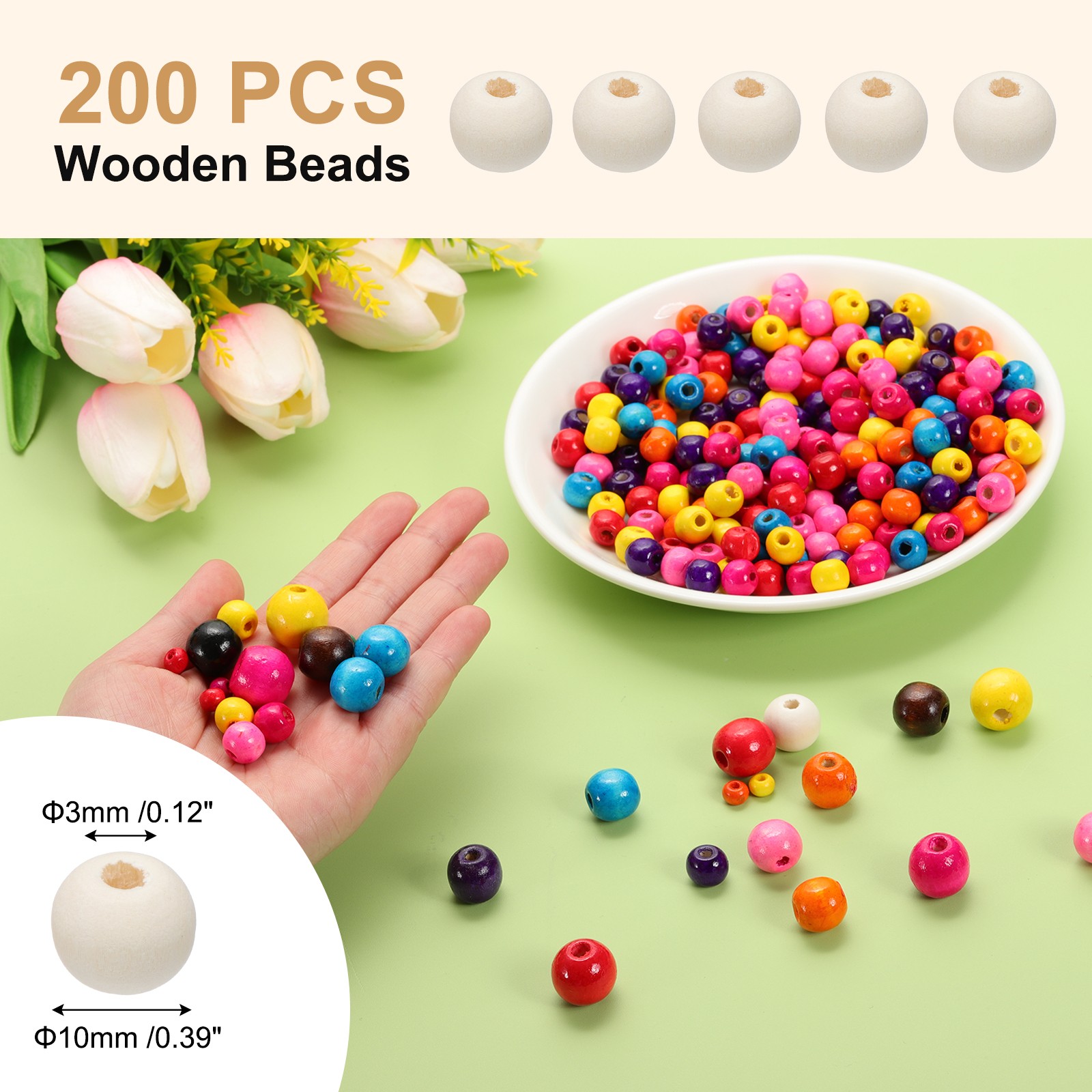 10mm Wooden Beads for Craft Making, 200 Pcs Loose Spacer Beads, White