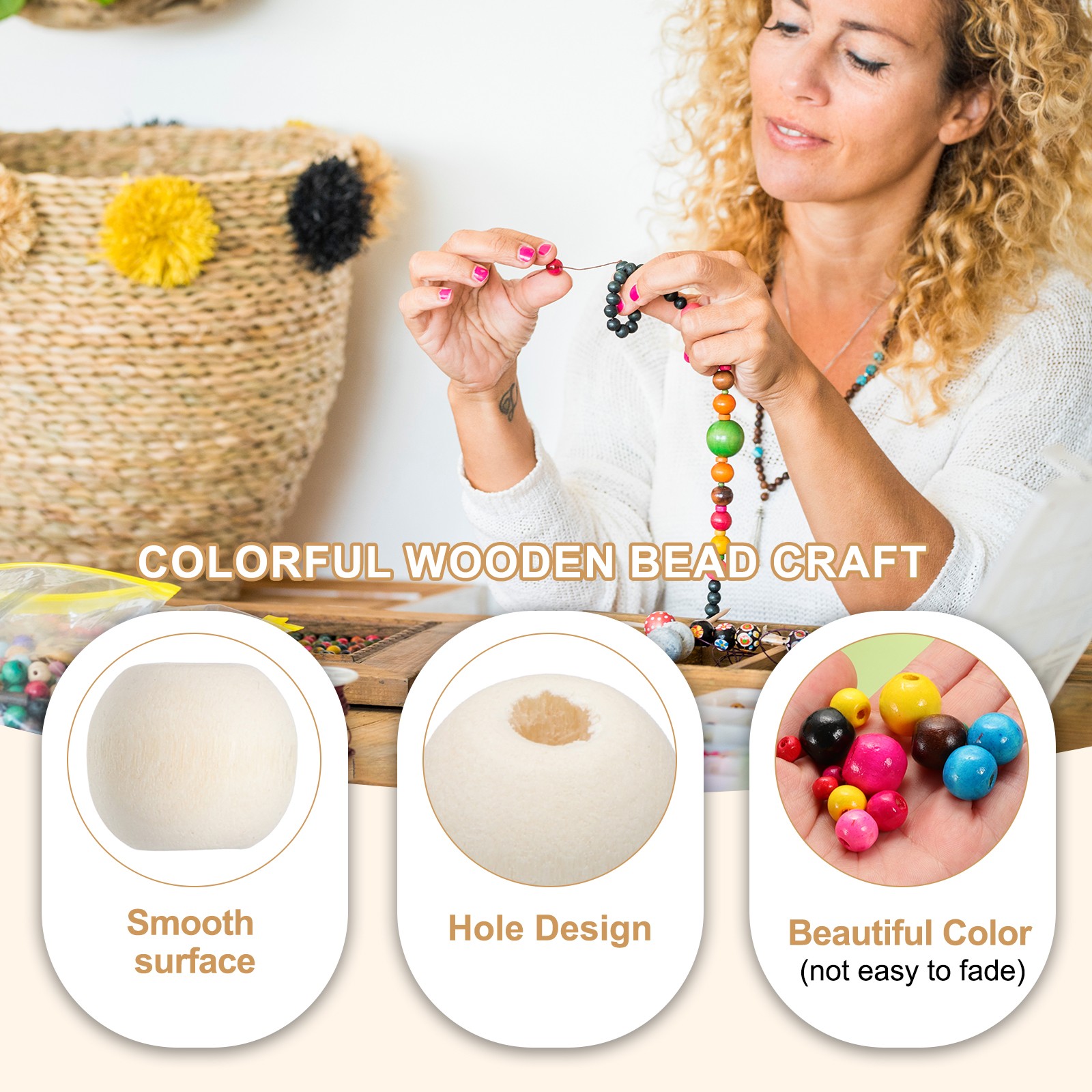 как выглядит 10mm Wooden Beads for Craft Making, 200 Pcs Loose Spacer Beads, White фото