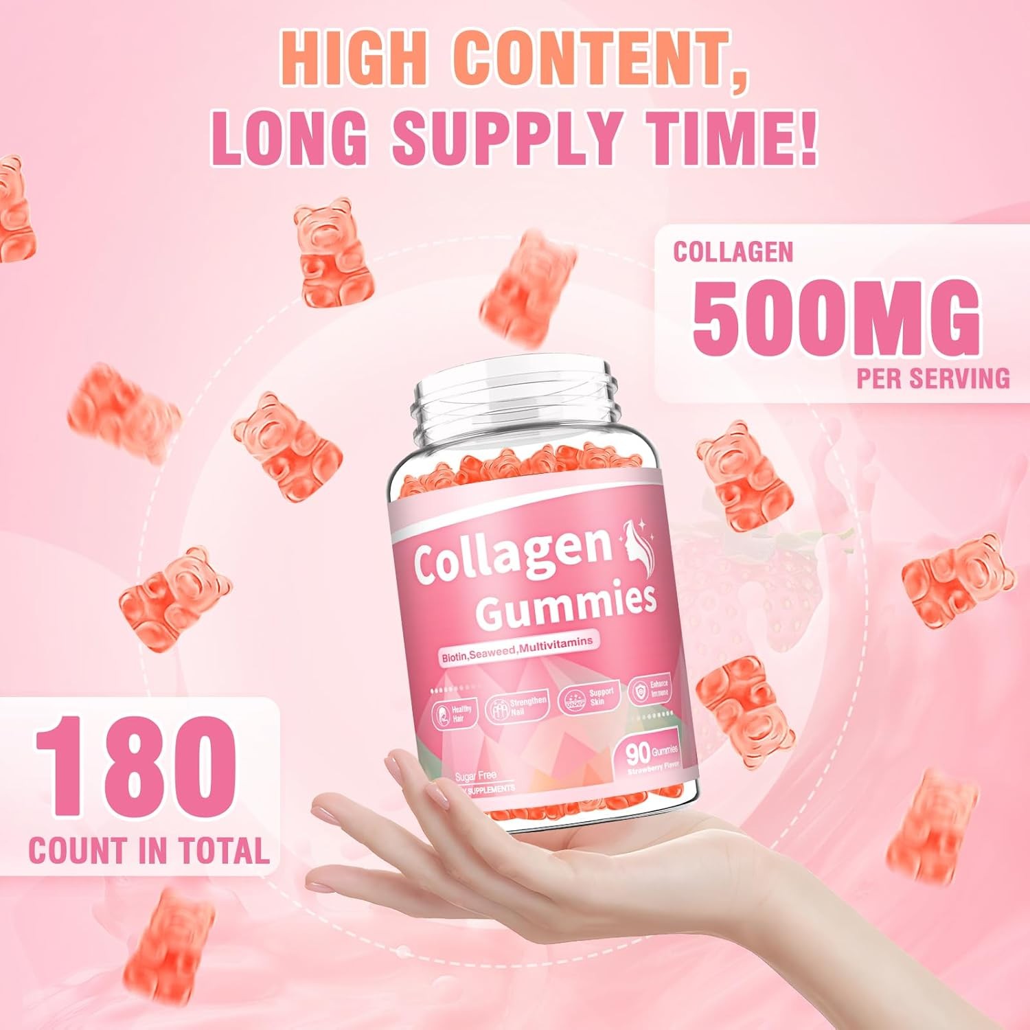 180 Count Collagen Gummies Collagen Protein Type I II III V X with Biotin Vitami