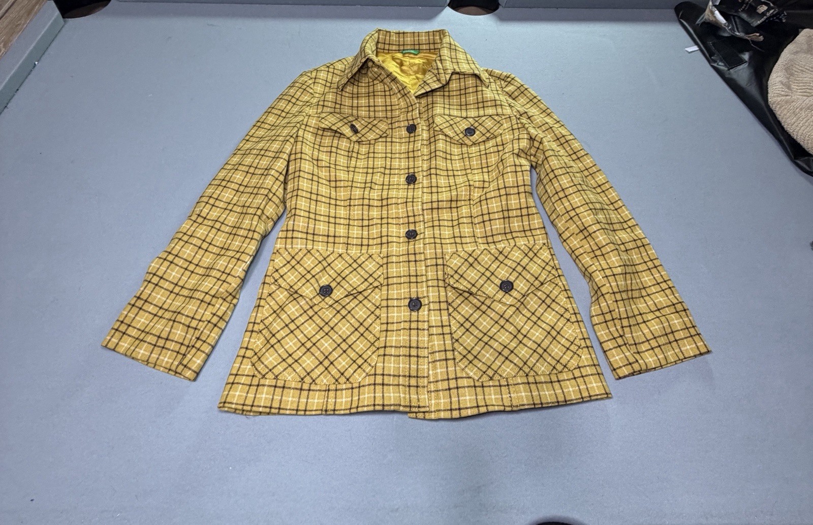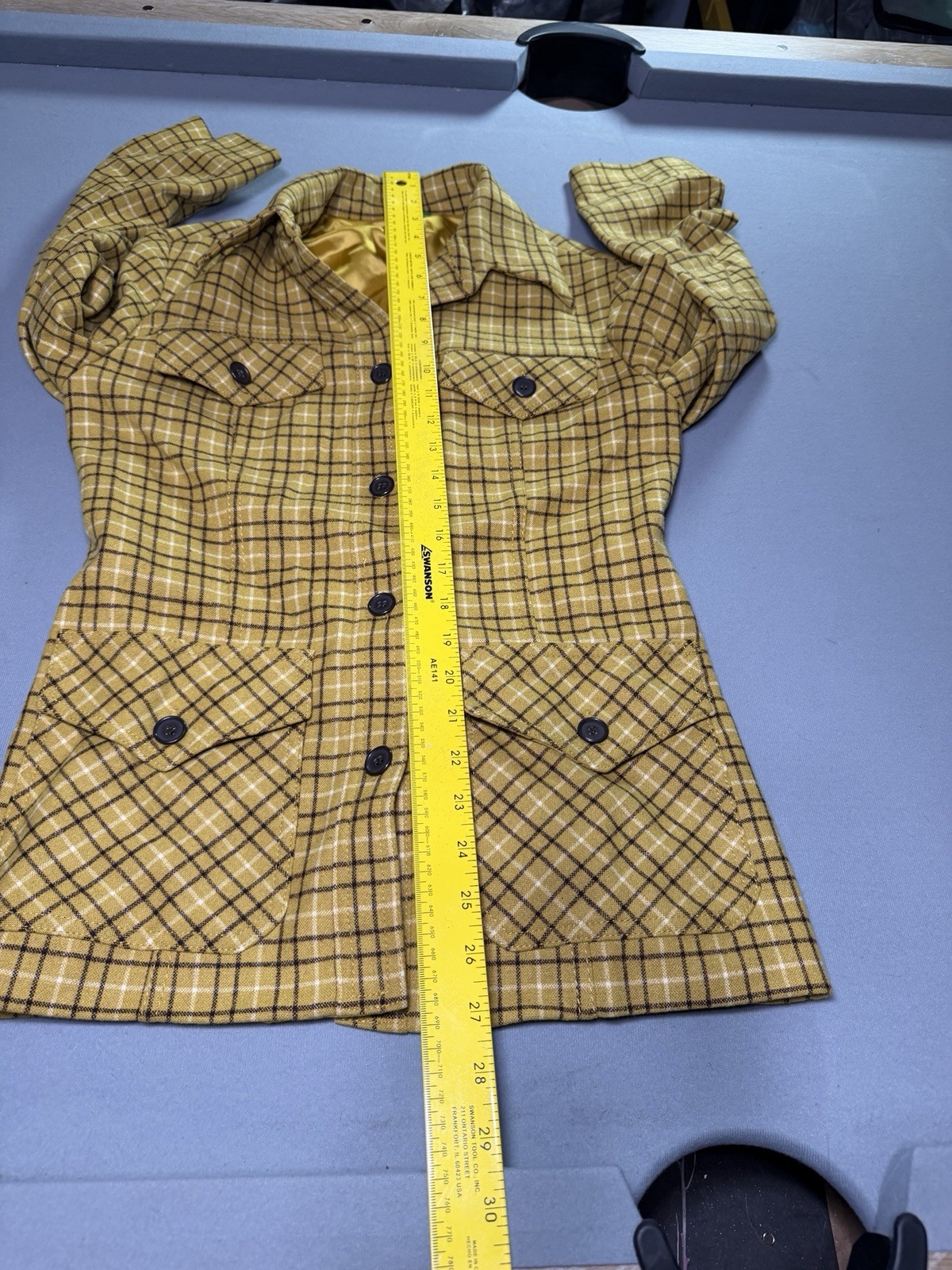 как выглядит Vintage Yellow Plaid 2 Piece Set XS Jacket Pants Retro 70s Mod Clueless Blazer фото