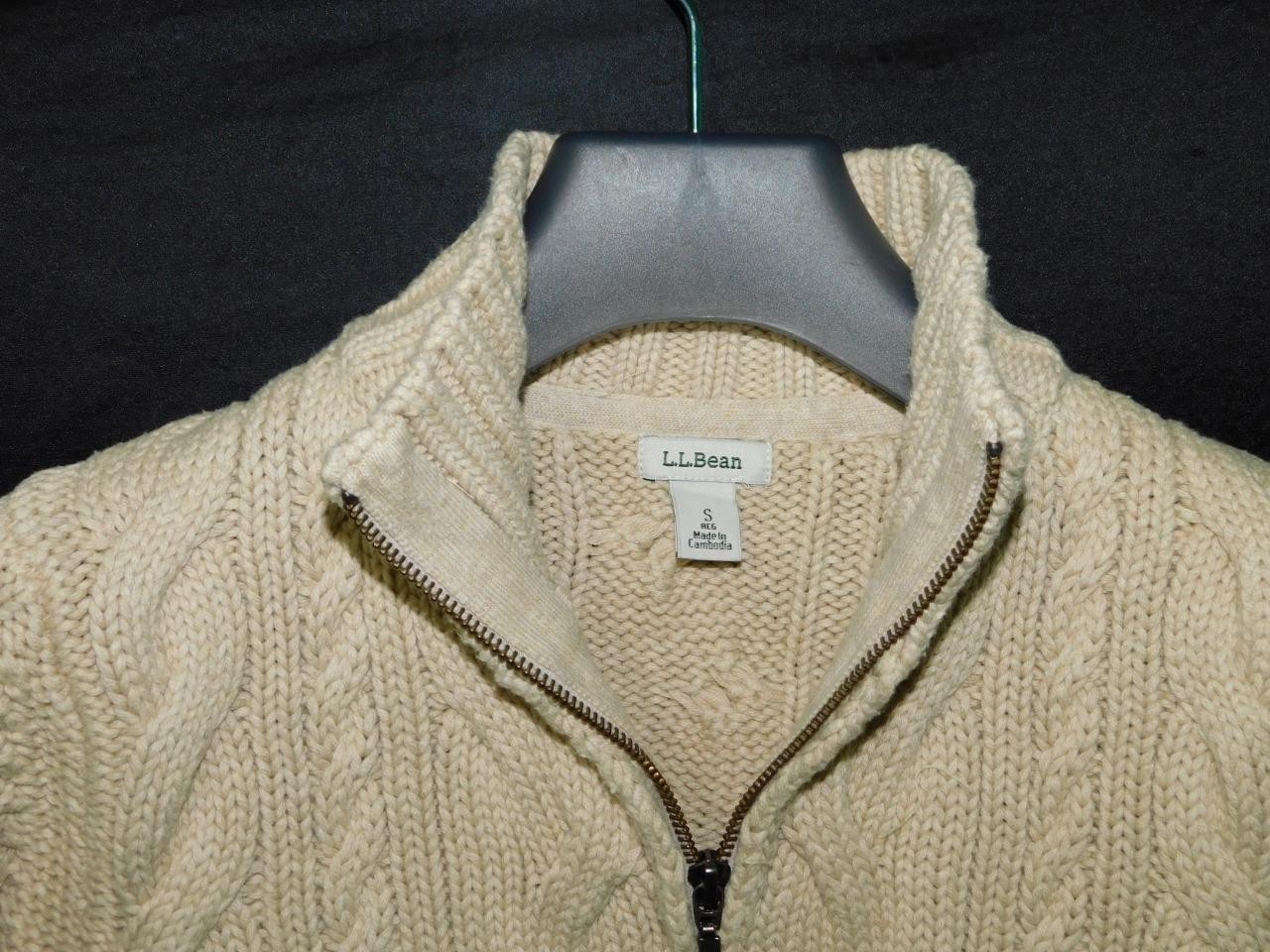 как выглядит LL Bean S NEW Brown Cable Knit Cardigan Sweater Full Zip Mock Neck Cotton NWOT фото