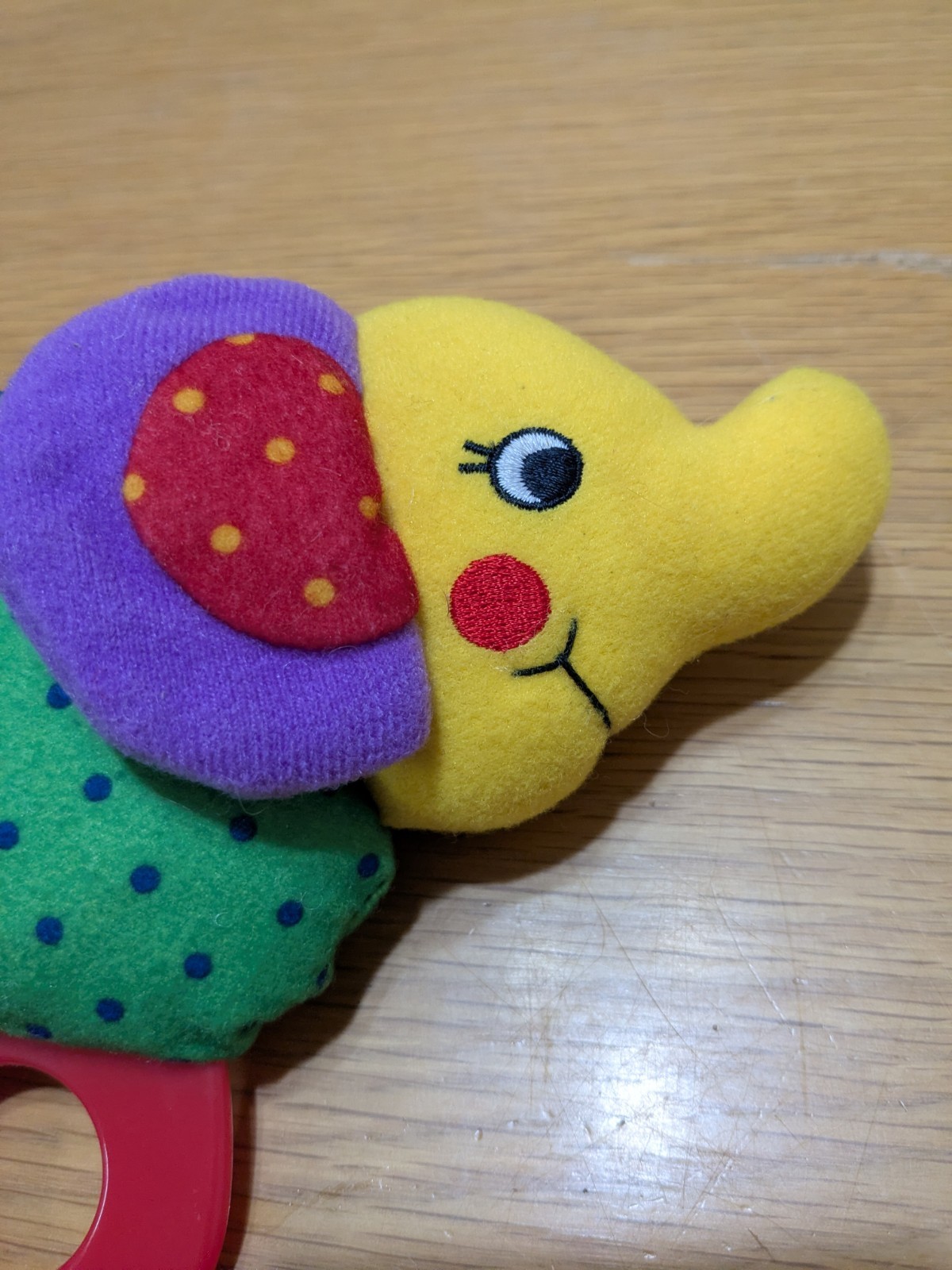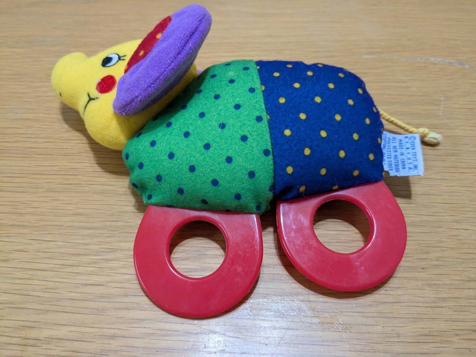 как выглядит VTG EDEN Elephant Plush Rattle Primary Colors Colorblock Double Ring Toy фото