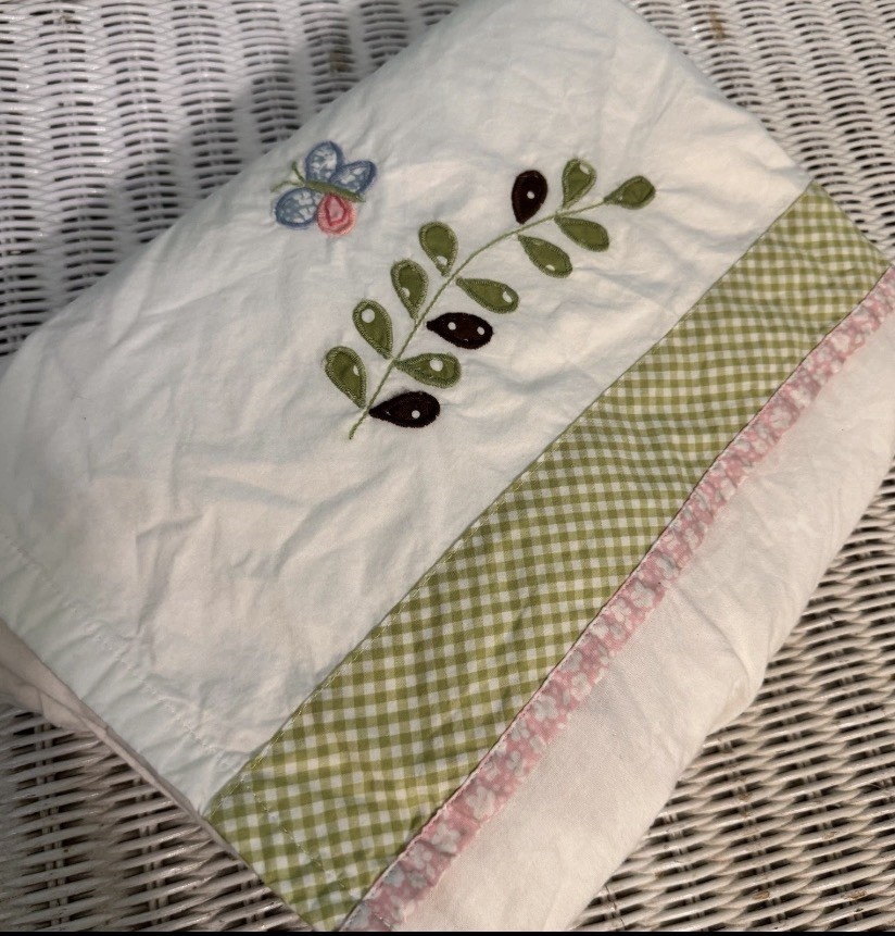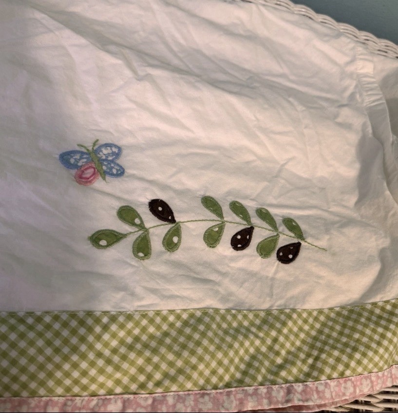 Pottery Barn Kids Hayley Crib Skirt Gingham Floral Butterflies Appliqu s EUC