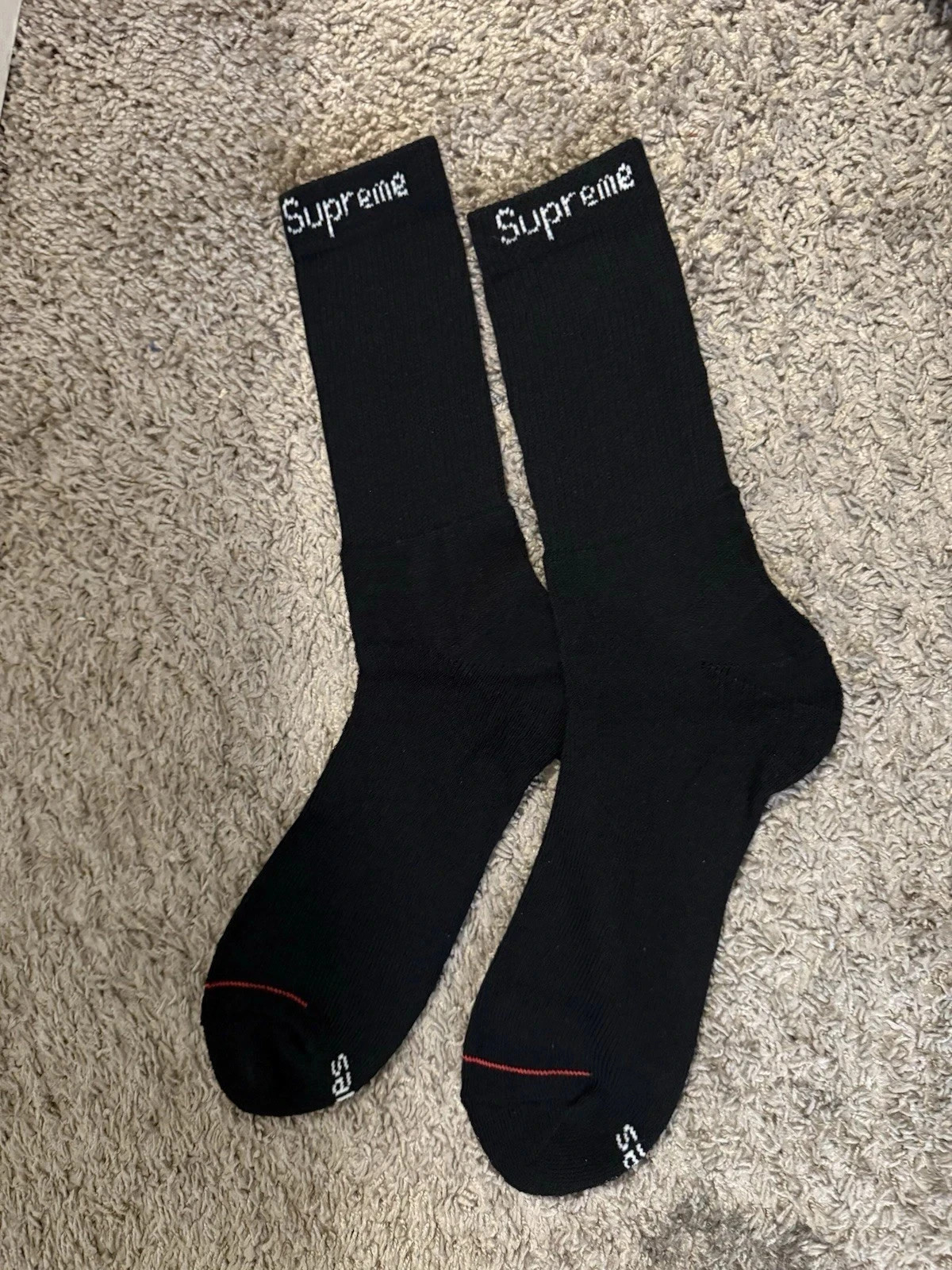 как выглядит Supreme x Hanes Black Crew Socks 4 Pack Size 6-12 Classic Logo Streetwear фото