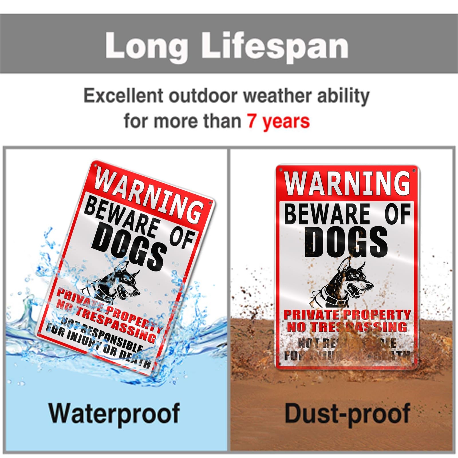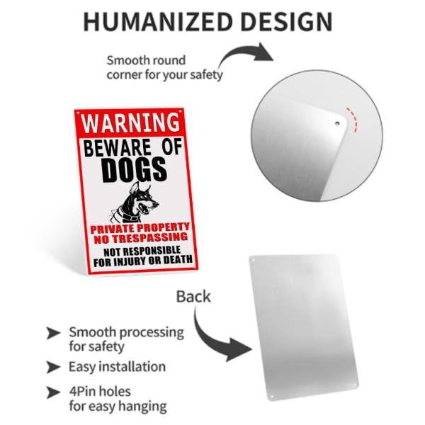 Beware of Dog Sign Metal Outdoor Fence Property Warning Rust Resistant 8x12