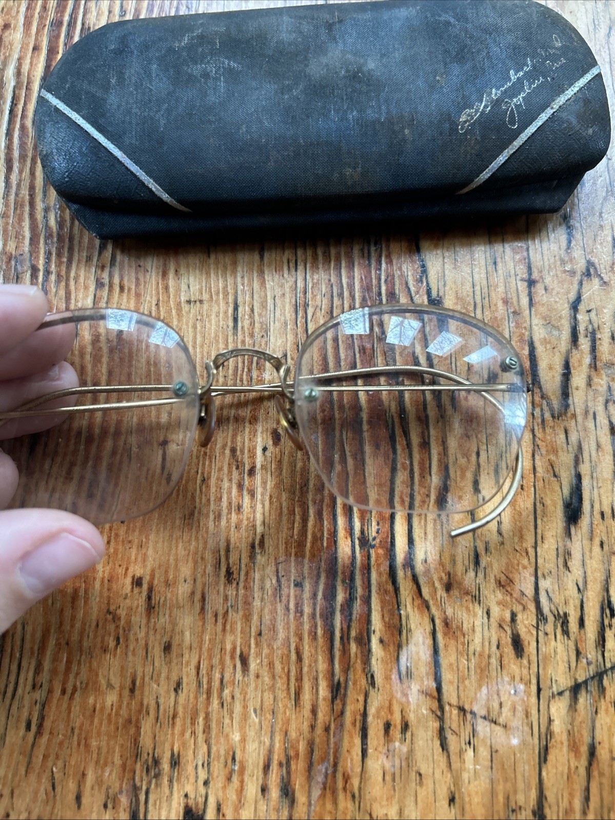 Vintage S/C 1/10 12k GF Rimless Eyeglasses With Case Bifocal Glasses