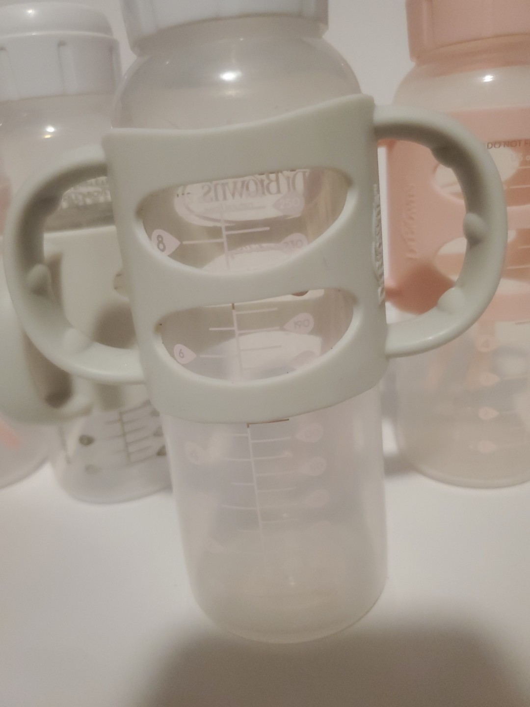 как выглядит Dr Brown Milestones Bottles W/Silicone Handles 2 Pink 2 Grey -- READ фото