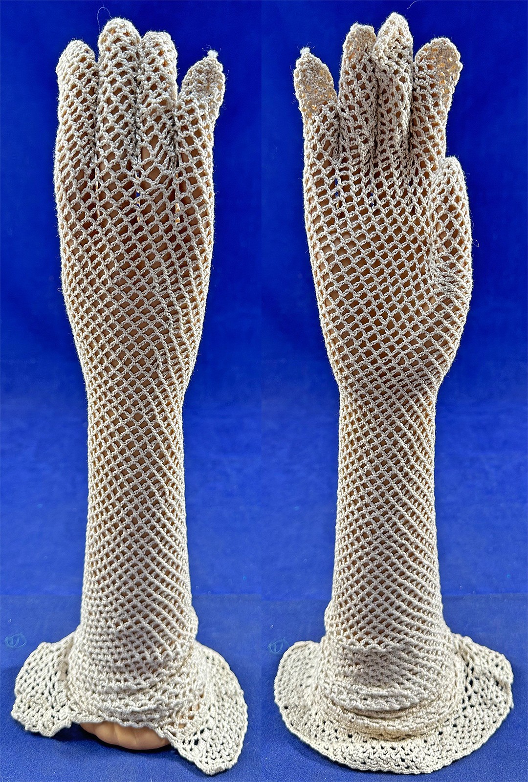 Edwardian Ivory Cream Crochet Lace Hand Knit 23 Long Wedding Opera Gloves VTG