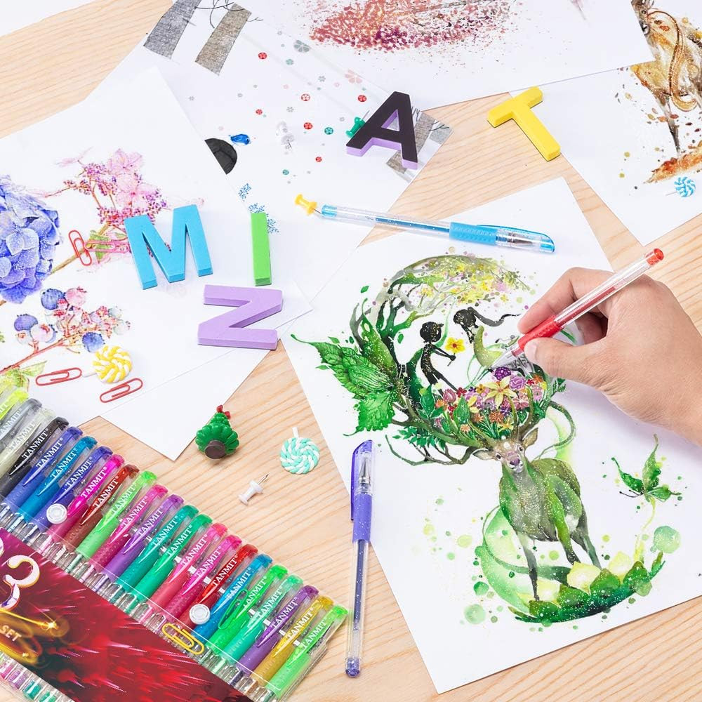 Glitter Gel Pens, 33 Colors Neon Glitter Pens Set Gel Art Markers with 40 More