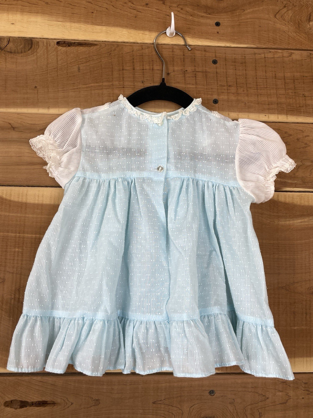 VTG Baby Girl Ruffle Lace Flowers Pastel Blue Spring/Summer Dress Handmade